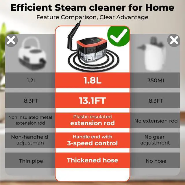 This steamer replaces multiple cleaning tools. Its quick-heating technology and lightweight design make it perfect for routine maintenance in homes, offices, and vehicles. The included heat-resistant gloves and extension pole enhance safety during deep cleans.