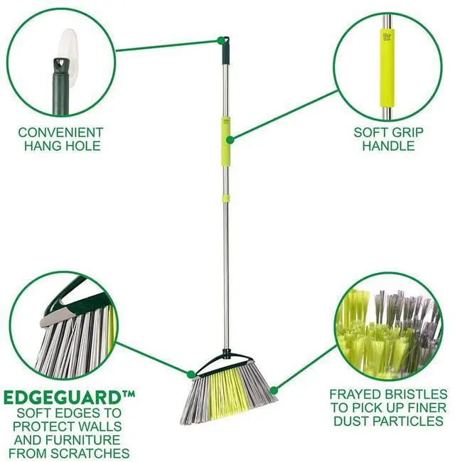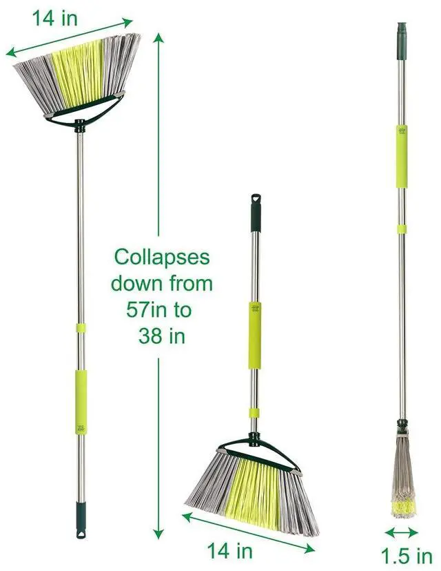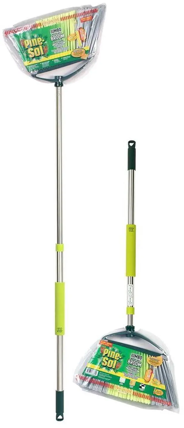 Pine-Sol Indoor Jumbo Broom with Long, Stainless Steel Collapsible Handle for Easy Storage, Heavy Duty Angle Bristles for Wood, Tile, Linoleum, and More - Sweeps Wet or Dry Debris