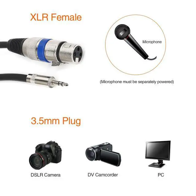 This Unbalanced XLR to 3.5mm cable is ideal for connecting an XLR microphone to the 3.5mm mini input of a digital camcorder, DSLR camera, or computer sound card.