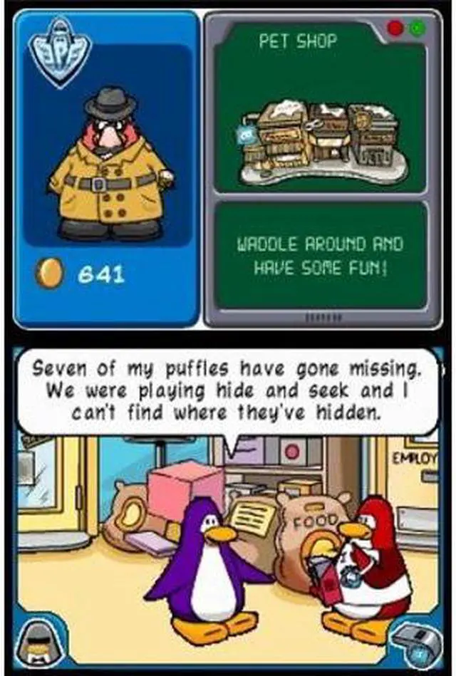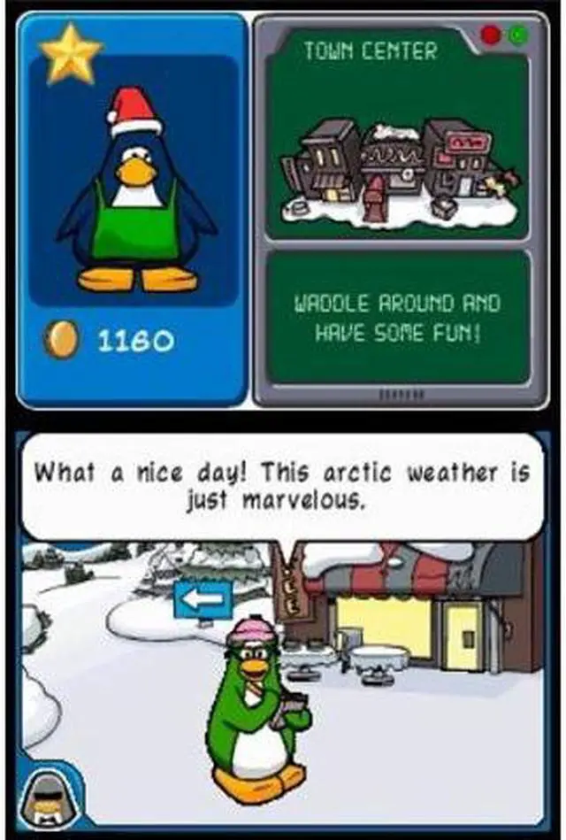 | Features | Club Penguin: Elite Penguin Force will introduce kids to all new adventures in the Club Penguin world, giving players a chance to complete secret agent missions, solve mysteries and connect with friends in new ways. The game allows players to take on the role of a covert agent in the Elite Penguin Force. Players embark on missions utilizing familiar and all-new gadgets, accessories, vehicles and locations to investigate mysterious events in the Club Penguin world. Club Penguin for Nintendo DS will include Disney's DGamer allowing kids to engage with other Disney game players in a secure online community whether at home or on the go via their Nintendo DS or home computer. Players will be able to wirelessly connect with the virtual Club Penguin world using the Nintendo DS to unlock special features and upload coins to their online penguin account. Includes DGamer - the all new online community exclusively for Disney gamers. Create unique 3-D avatars, create a persistent profile, chat with friends in a Club Penguin chat room, share Club Penguin themed accessories, earn in-game honors and unlock exclusive Disney content. |