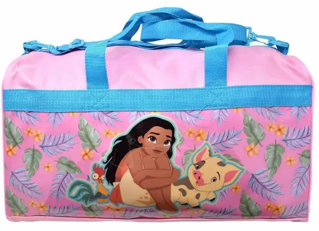 This Moana duffle bag combines durable 600D polyester with printed PVC side panels for fun and functional storage. Featuring bright character artwork, it offers a roomy space for clothing, sports gear, or weekend essentials. The zip closure keeps belongings secure, while carry handles make it easy for children to tote. Lightweight and sturdy, it works well for school activities, overnight trips, or travel. A great accessory for fans of Disneys Moana.