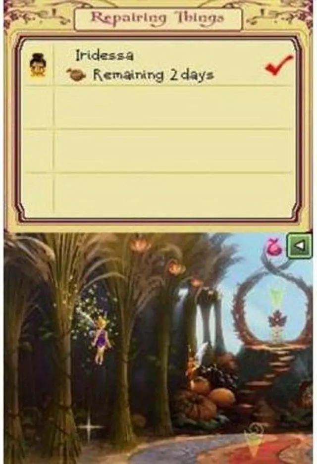 Disney Fairies: Tinker Bell for Nintendo DS allows girls to use their stylus to fly around and explore the beautiful world of Pixie Hollow as the beloved Tinker Bell. Players can fully customize Tinker Bell's wardrobe and accessories to create trendsetting and fashionable looks. Disney Fairies: Tinker Bell also allows girls to interact with dozens of Disney Fairies, including Silvermist, Iridessa and Fawn, and explore Pixie Hollow through time-based activities and mini-quests. Players are able to barter and trade items they've collected for new materials, clothing and accessories to add their wardrobe. In addition, the game utilizes the DS real-time clock, so environments will reflect time of year or time of day. Girls will witness snow falling in the winter time, fireflies coming out at night and Fairies wearing costumes on Halloween.