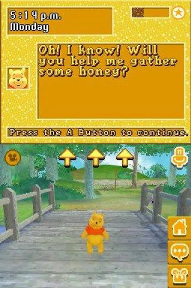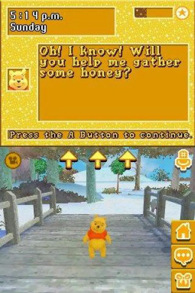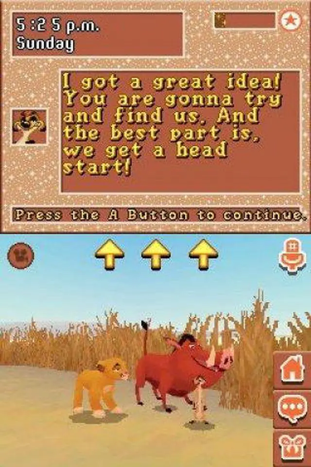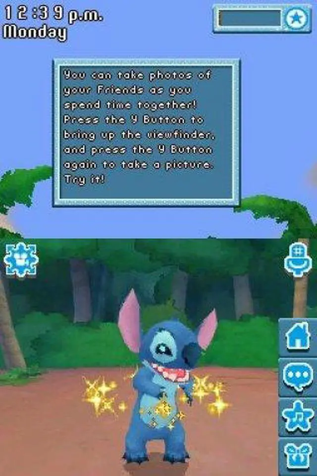 | Features | Published by Disney Interactive Studios, Disney Friends for Nintendo DS is a new virtual life simulator and adventure game featuring some of the most beloved characters from popular Disney films including The Lion King, Winnie the Pooh, Lilo & Stitch and Finding Nemo. Allowing players to befriend and interact with Stitch, Dory, Simba, and Winnie the Pooh, Disney Friends uses voice and touch to control the actions and emotional behaviors of the game's characters. Disney Friends also features adventure elements, offering players the opportunity to bond with the characters while exploring memorable film environments and moments. The game encourages nurturing and reinforces positive values such as caring and responsibility, all while fostering players' friendships with the film characters they already know and love. |