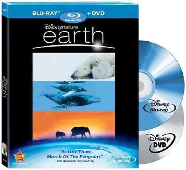 DISNEYNATURE-EARTH (BR/2 DISC)True story of various different animal families.+ DVDYear: 2009Theatrical Release: 2009-04-22Video Release: 2009-09-01Studio: DisneyGenre: DocumentaryMPAA Rating: GColor: ColorRuntime: 96Animated: Live-ActionFull Synopsis: An epic story of adventure, starring some of the most magnificent and courageous creatures alive, awaits you in EARTH. Disneynature brings you a remarkable story of three animal families on a journey across our planet -- polar bears, elephants and humpback whales. Filmed with spectacular clarity and beauty, EARTH is both majestic and intimate as it captures rare footage of nature's wildest and most elusive animals. From the landmark Disneynature collection, EARTH is an astonishing and heartwarming film filled with adventure, suspense and humor that will take your breath away.Director: Alastair FothergillCast: Alastair Fothergill; James Earl Jones (voice)