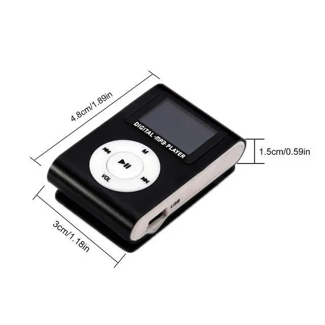 Mini MP3 Player, Portable Music Player with Clip, LCD Screen, Digital Music Media Player MiniMP3 BackClip Player Supports 32GB Memory, Earphone & USB Cable (Black)