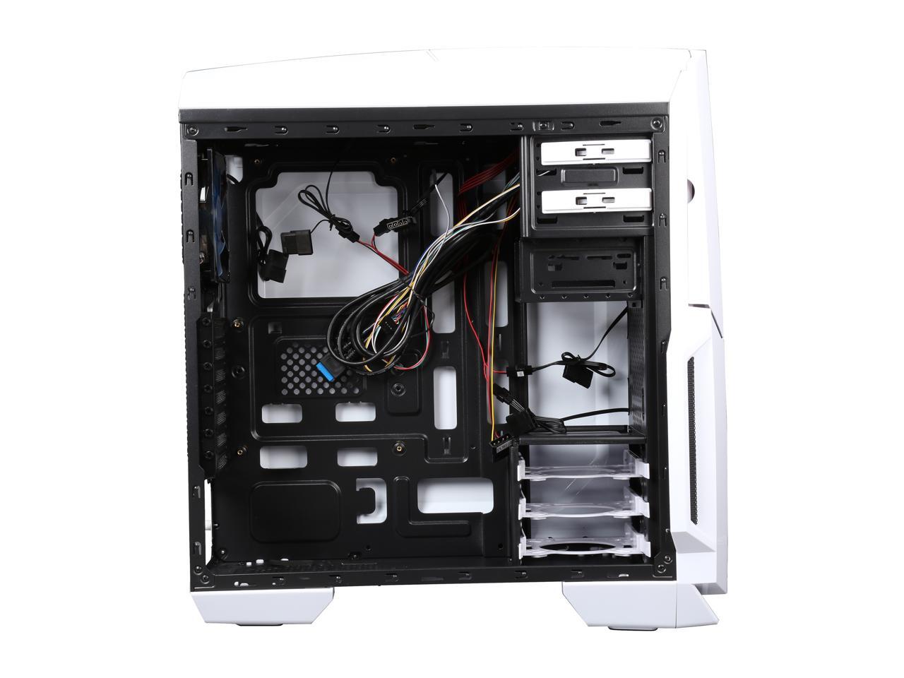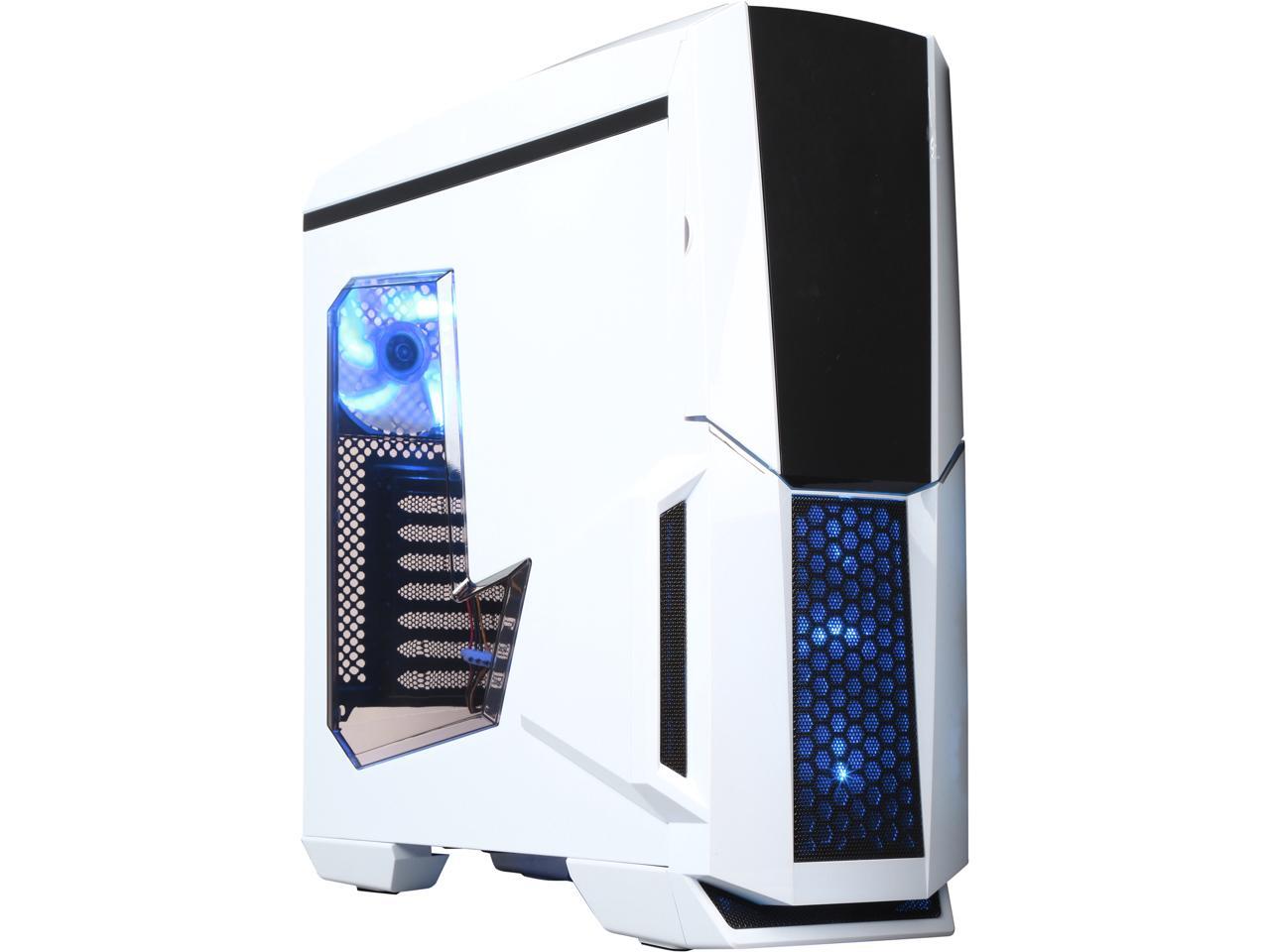 DIYPC Gamemax-W White Dual USB 3.0 ATX Full Tower Gaming Computer Case with Build-in 5 x Blue Fans (2 x 120mm LED Fan x Top, 2 x 120mm LED Fan x Front, 1 x 120mm LED Fan x Rear), Water Cooling Ready