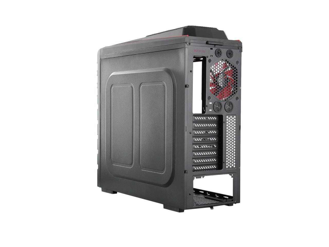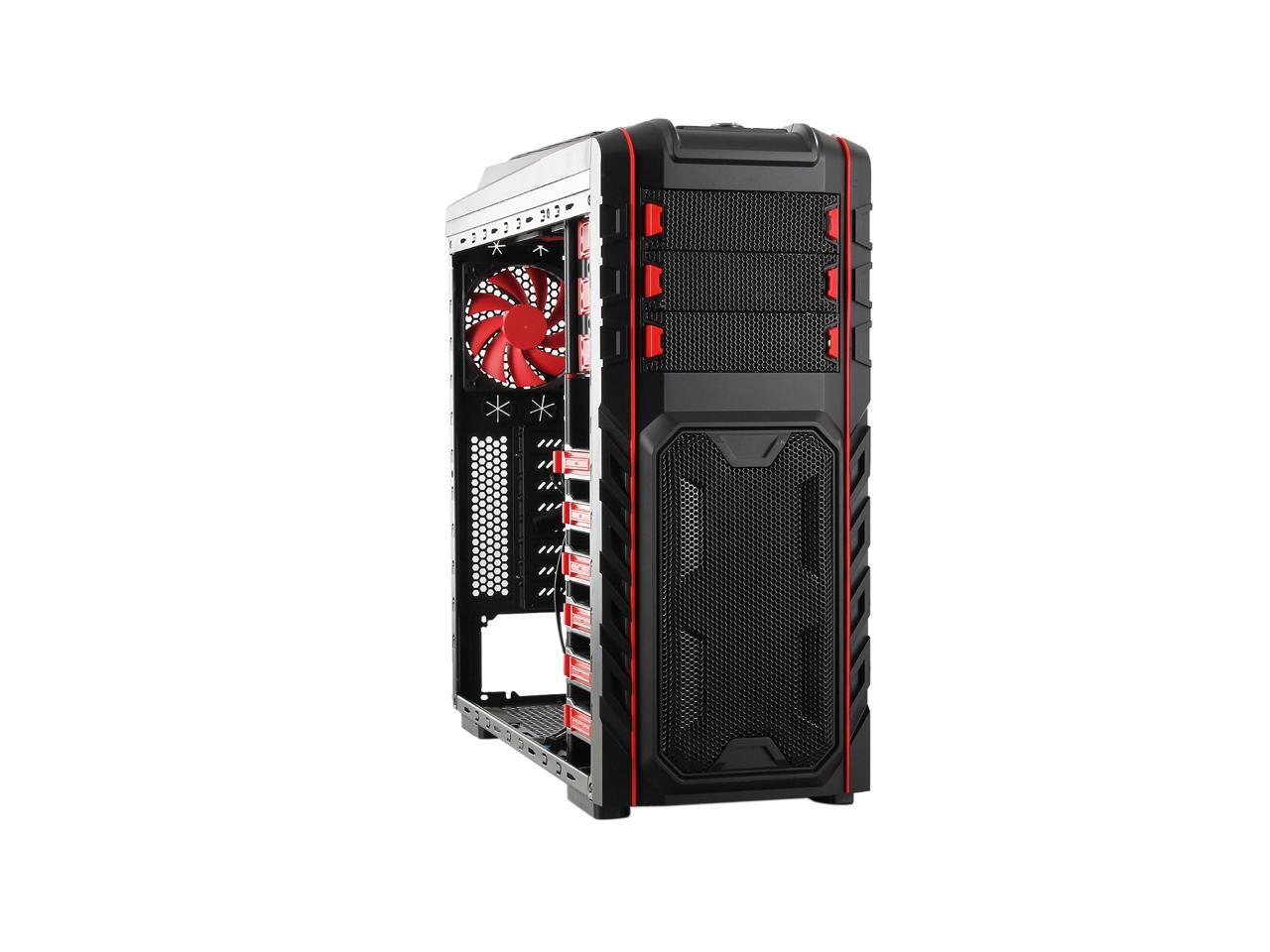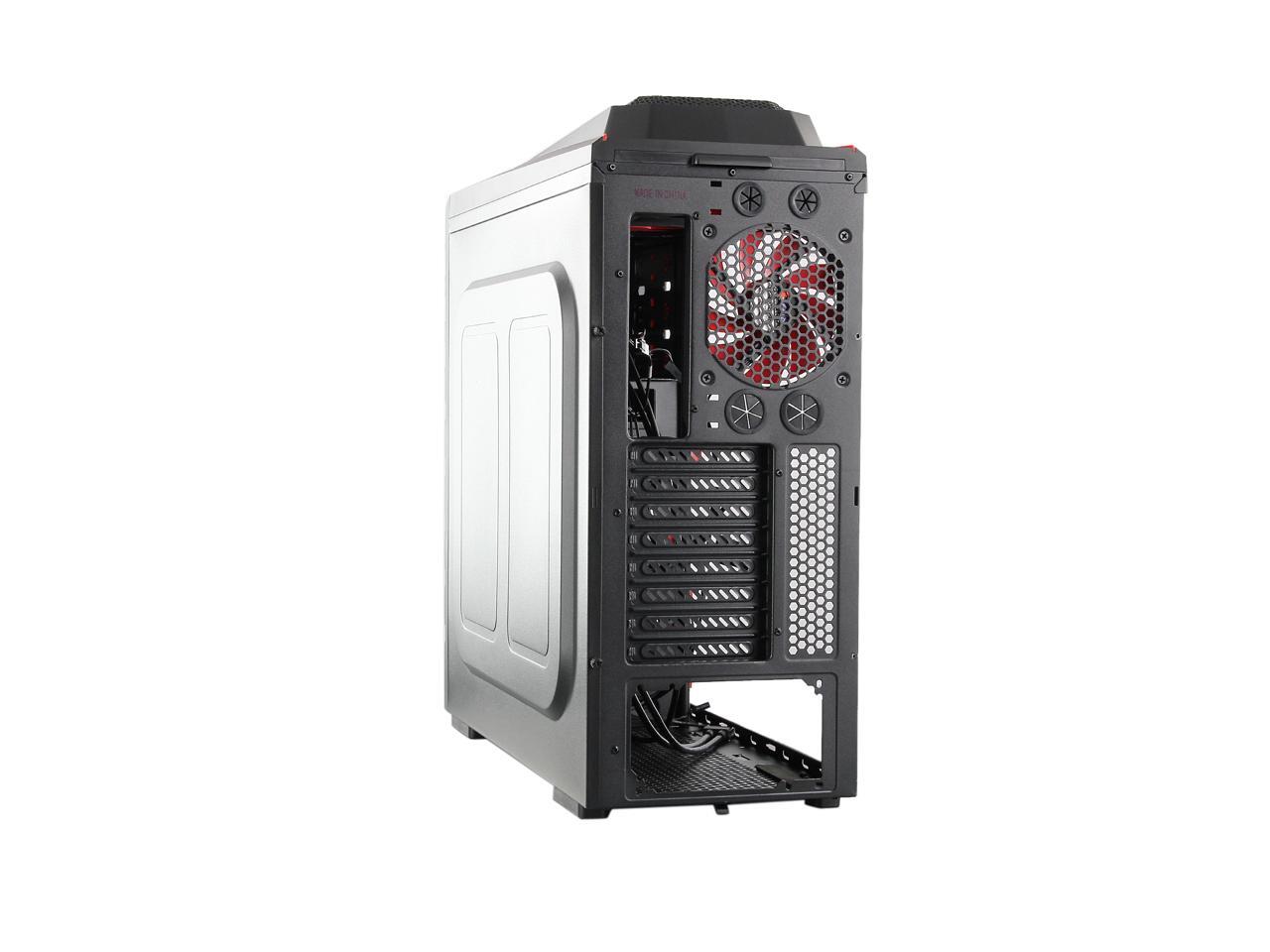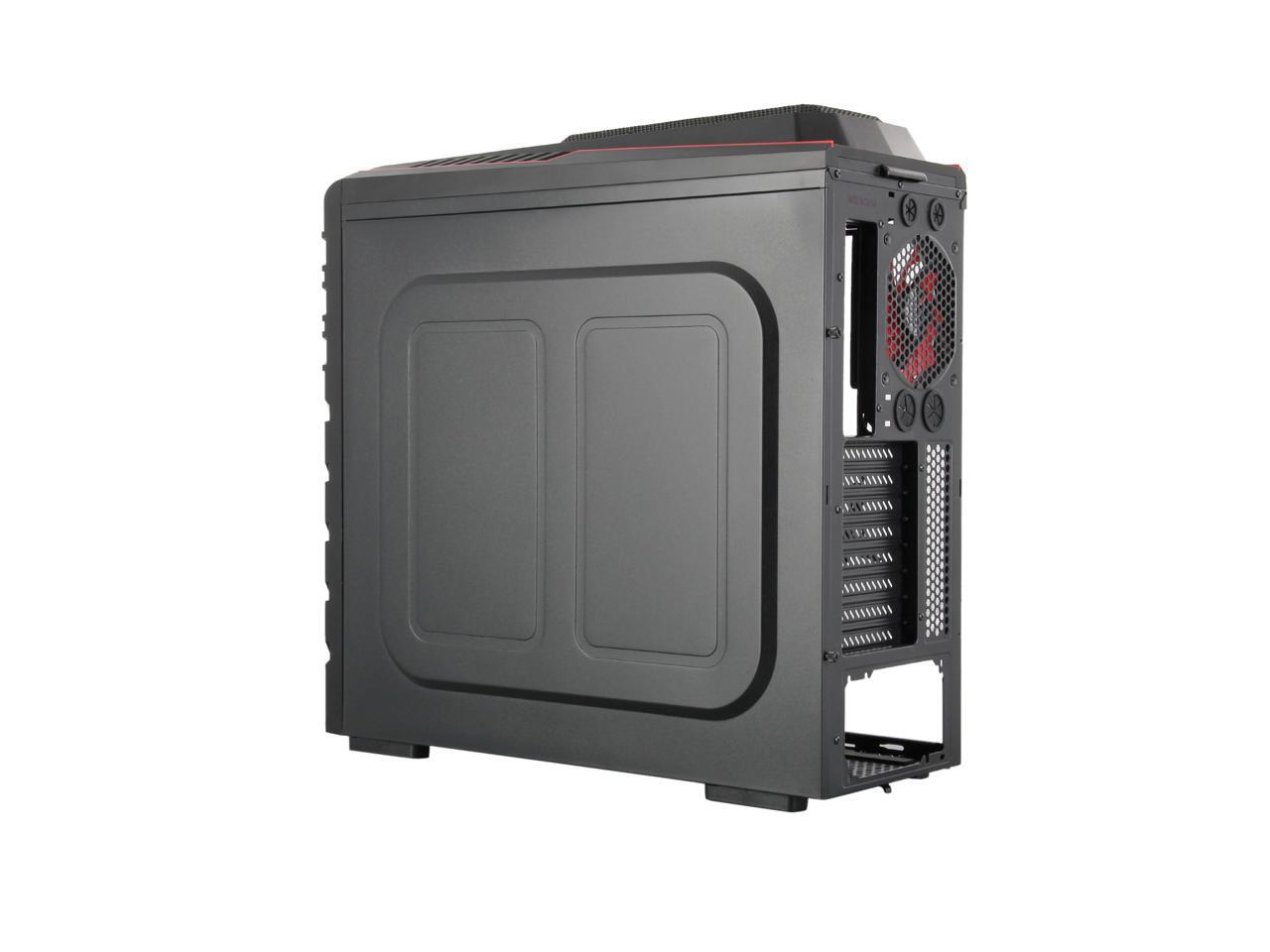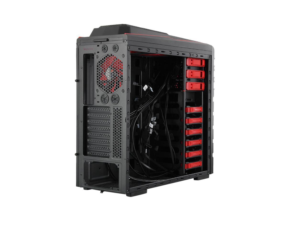 Two front 120mm LED red fans, two top 120mm red fans, two side 120mm LED red fans and one rear 120mm red fan work together to create cyclonic airflow that takes the heat away and helps keep your system running stable and always at peak performance. The glowing LEDs give out eye-catching light that liven up every gaming session.