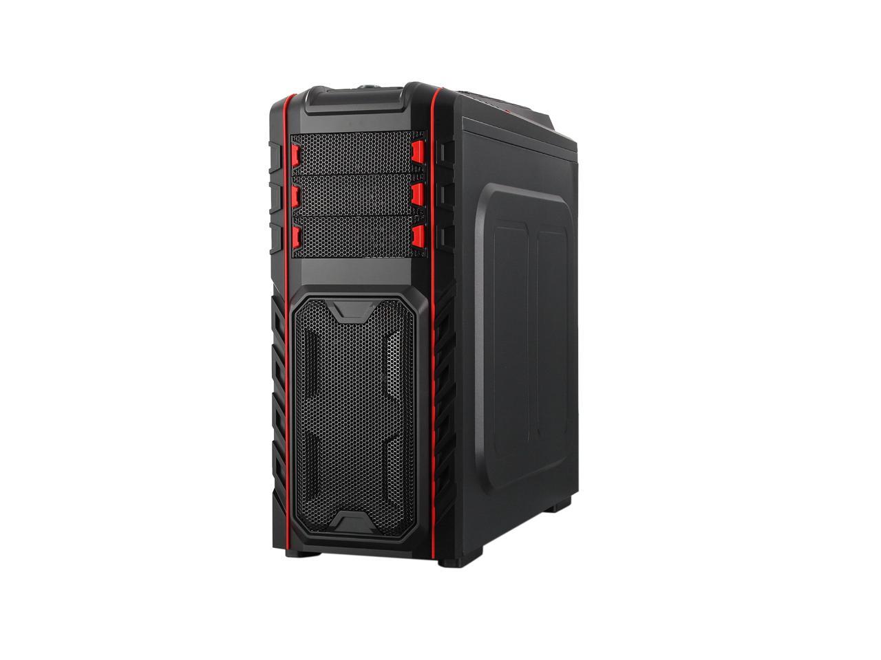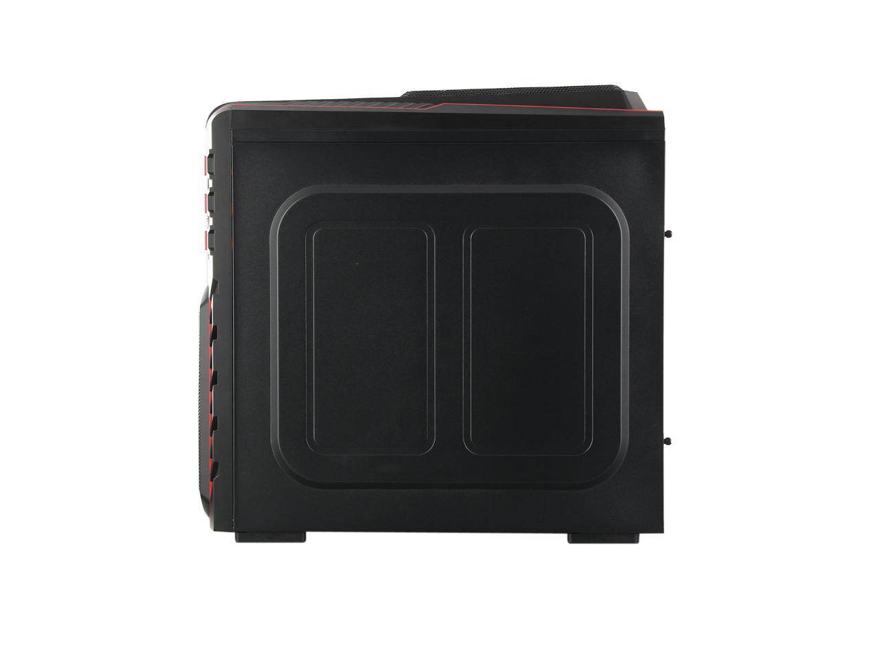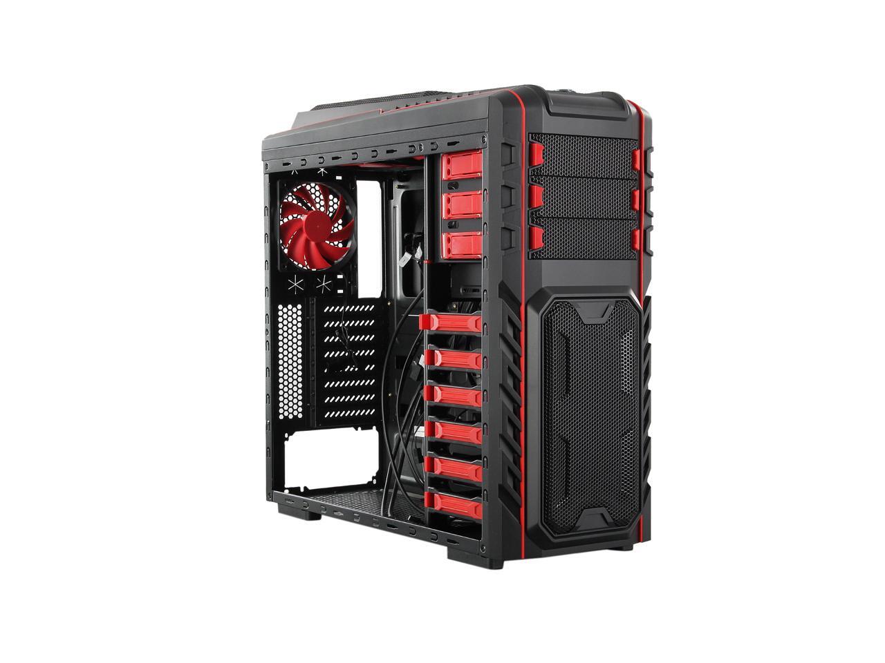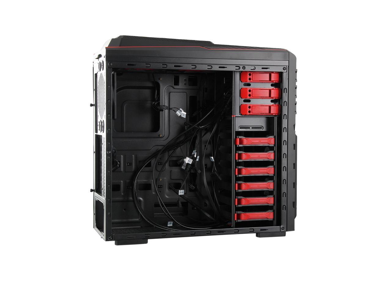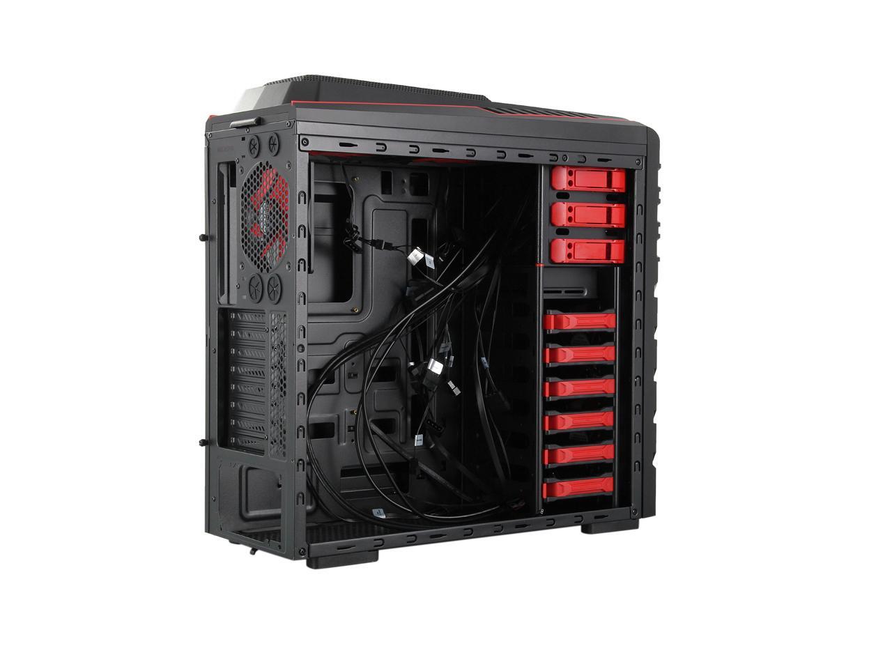 Two front 120mm LED red fans, two top 120mm red fans, two side 120mm LED red fans and one rear 120mm red fan work together to create cyclonic airflow that takes the heat away and helps keep your system running stable and always at peak performance. The glowing LEDs give out eye-catching light that liven up every gaming session.