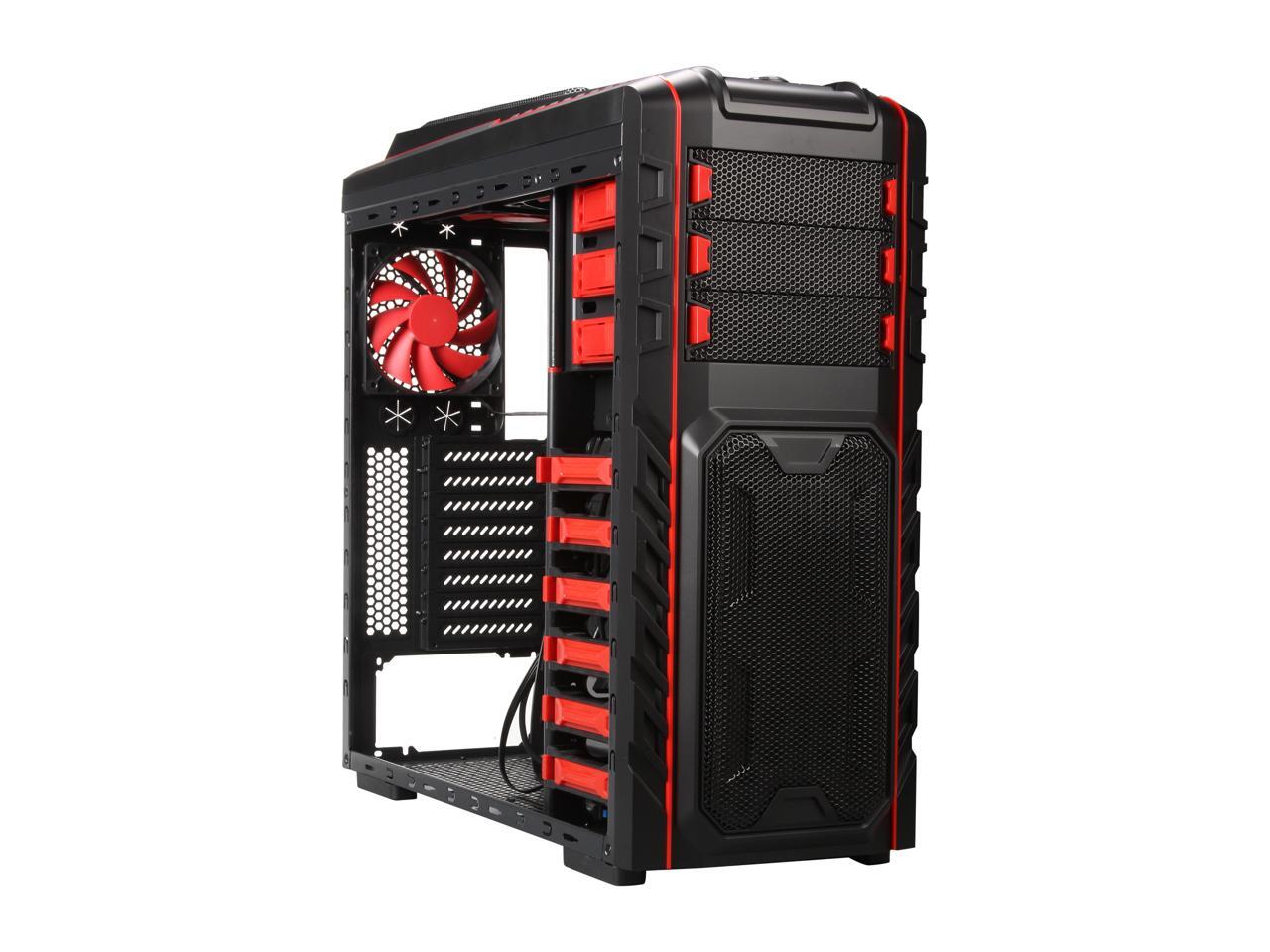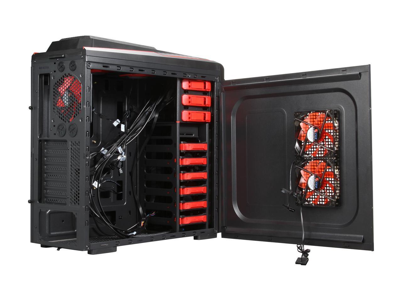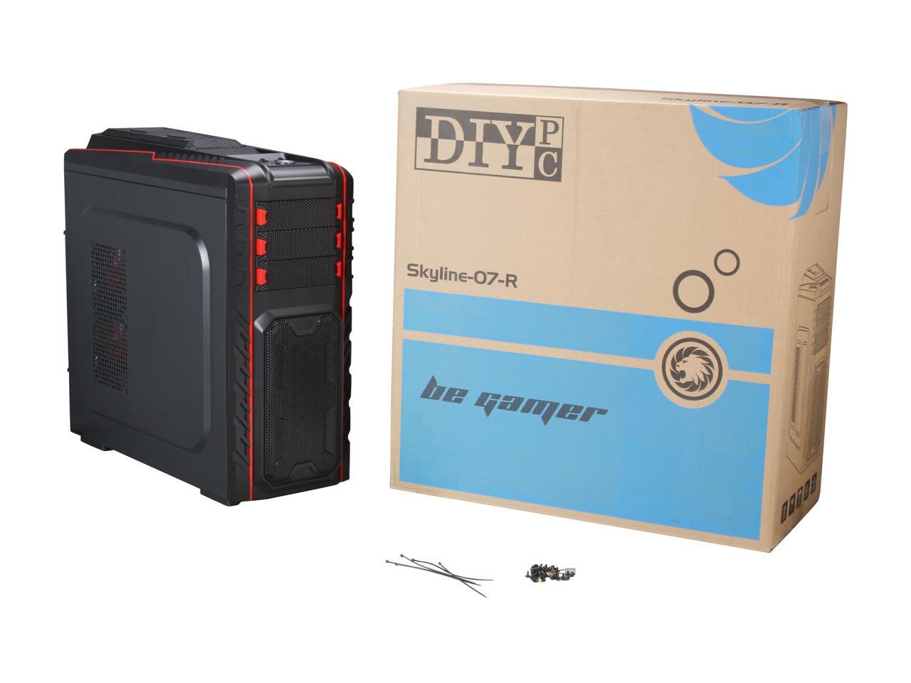 DIYPC Skyline-07-R Black / Red SPCC ATX Full Tower Gaming Computer Case with 7 x 120mm Red Fans, Hot Swap Docking, Fan Controller
