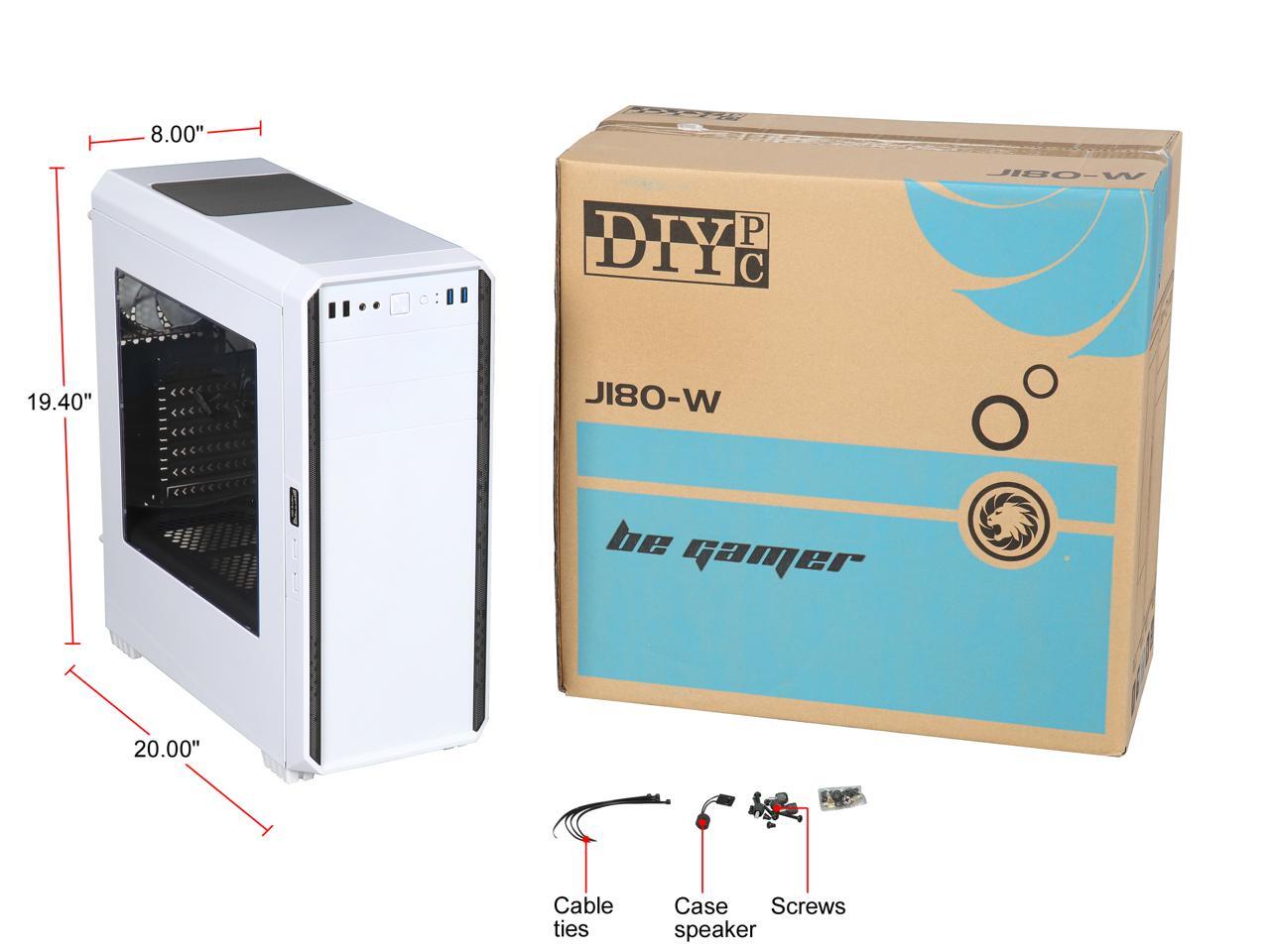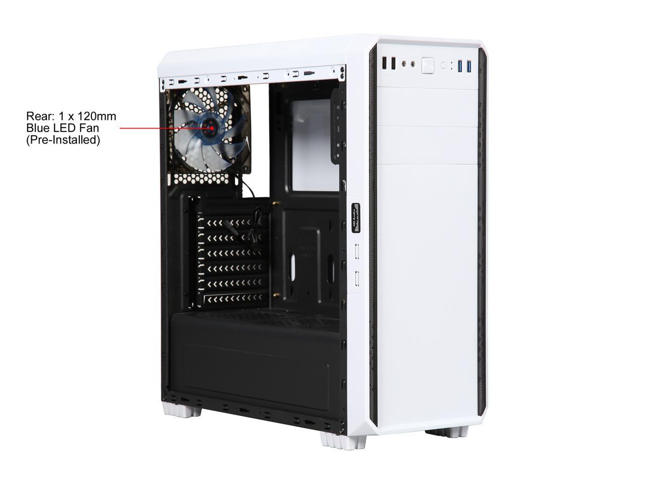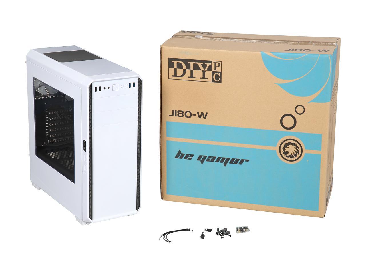 DIYPC J180-W White Dual USB3.0 ATX Mid Tower Gaming Computer Case with 2 x 120mm Fans (Pre-Installed)