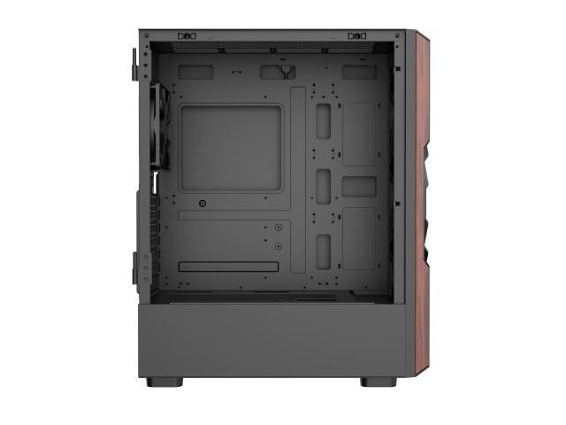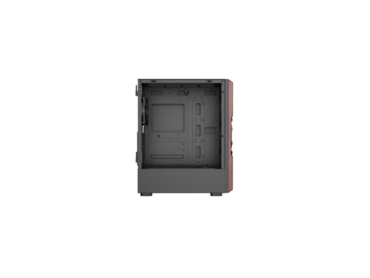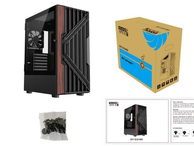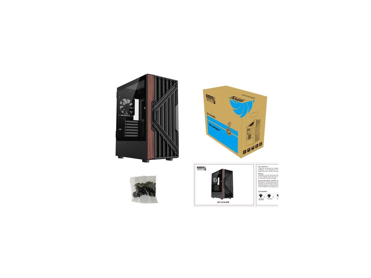 DIYPC DIY-G18-WD Black USB3.0 /Type C ATX Mid Tower Gaming Computer Case w/ Tempered Glass Side Panel and Walnut Wood Front Panel. 4 x 120mm PWM Fan Pre-Installed