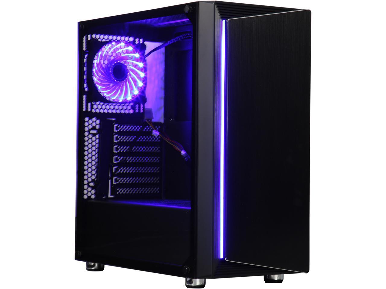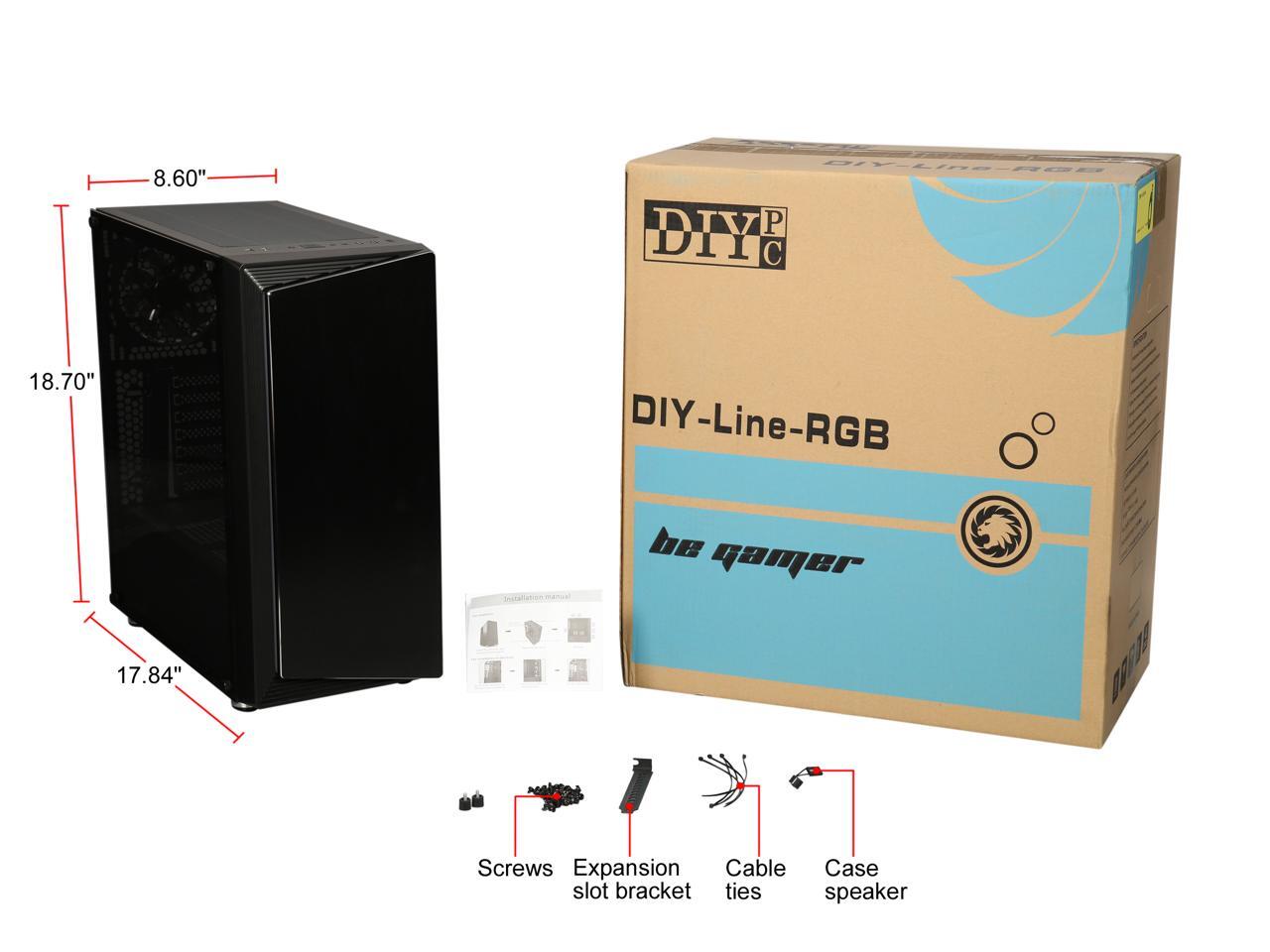 DIYPC DIY-Line-RGB Black Dual USB3.0 ATX Mid Tower Gaming Computer Case w/Tempered Glass Panel and Integrated RGB Strip/Pre-Installed RGB LED Fan