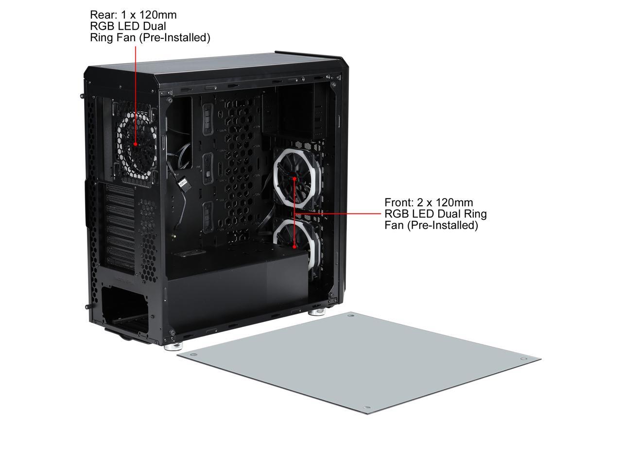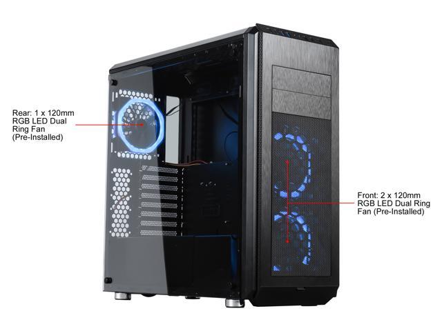 Pre-installed 3 x RGB LED Dual Ring Fan (7 different color in 3 modes control- circularly flashing, breathing and stable) provides great cooling and dynamic cyber gaming atmosphere