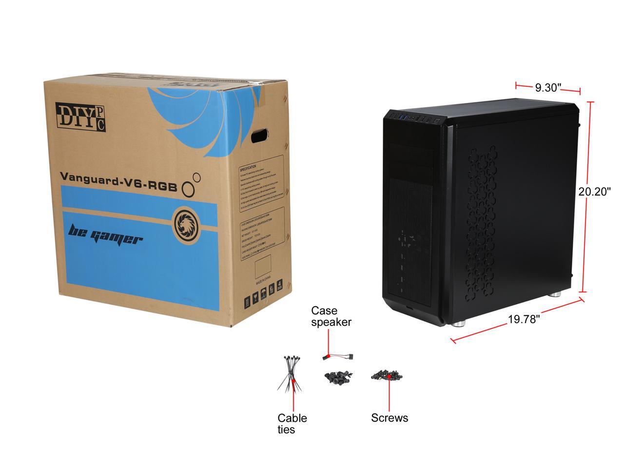 DIYPC Vanguard-V6-RGB Black Dual USB3.0 Steel/ Tempered Glass ATX Mid Tower Gaming Computer Case w/Tempered Glass Panel and Pre-Installed 3 x RGB LED Dual Ring Fans (7 Different Color in 3 Mode Control)