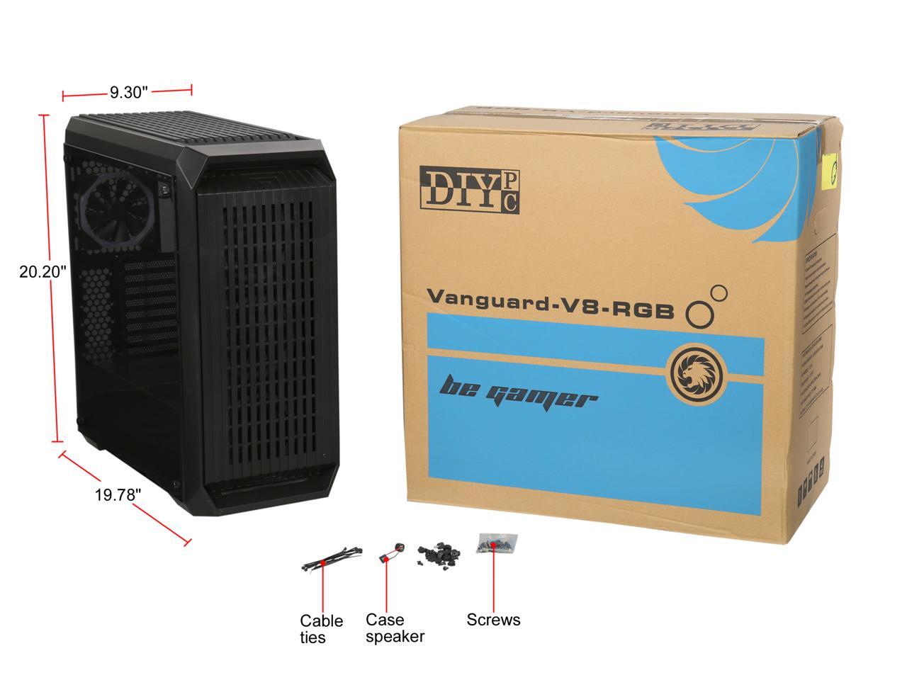 DIYPC Vanguard-V8-RGB Black Dual USB3.0 Steel/ Tempered Glass ATX Mid Tower Gaming Computer Case w/Tempered Glass Side Panel and Pre-Installed 4 x RGB LED Dual Ring Fans (7 Different Color in 3 Mode Control)