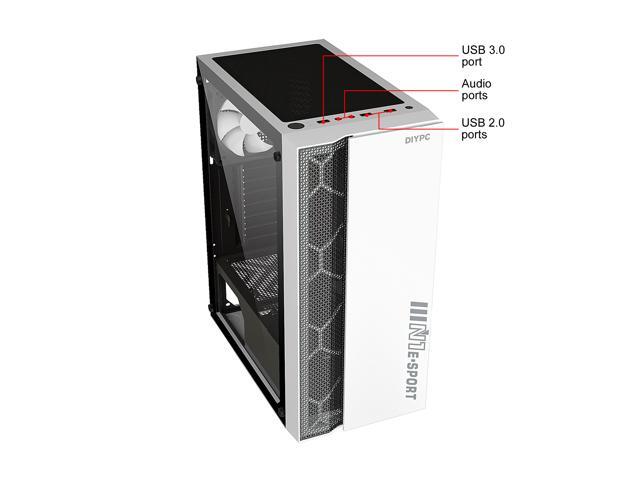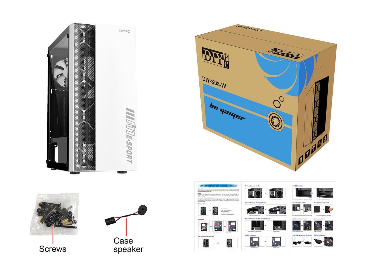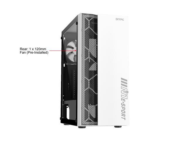 DIYPC DIY-S08-W White USB 3.0 Steel / Tempered Glass ATX Mid Tower Computer Case, 1 x 120mm Fan x Rear (Pre-Installed)