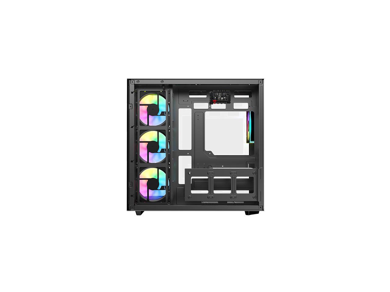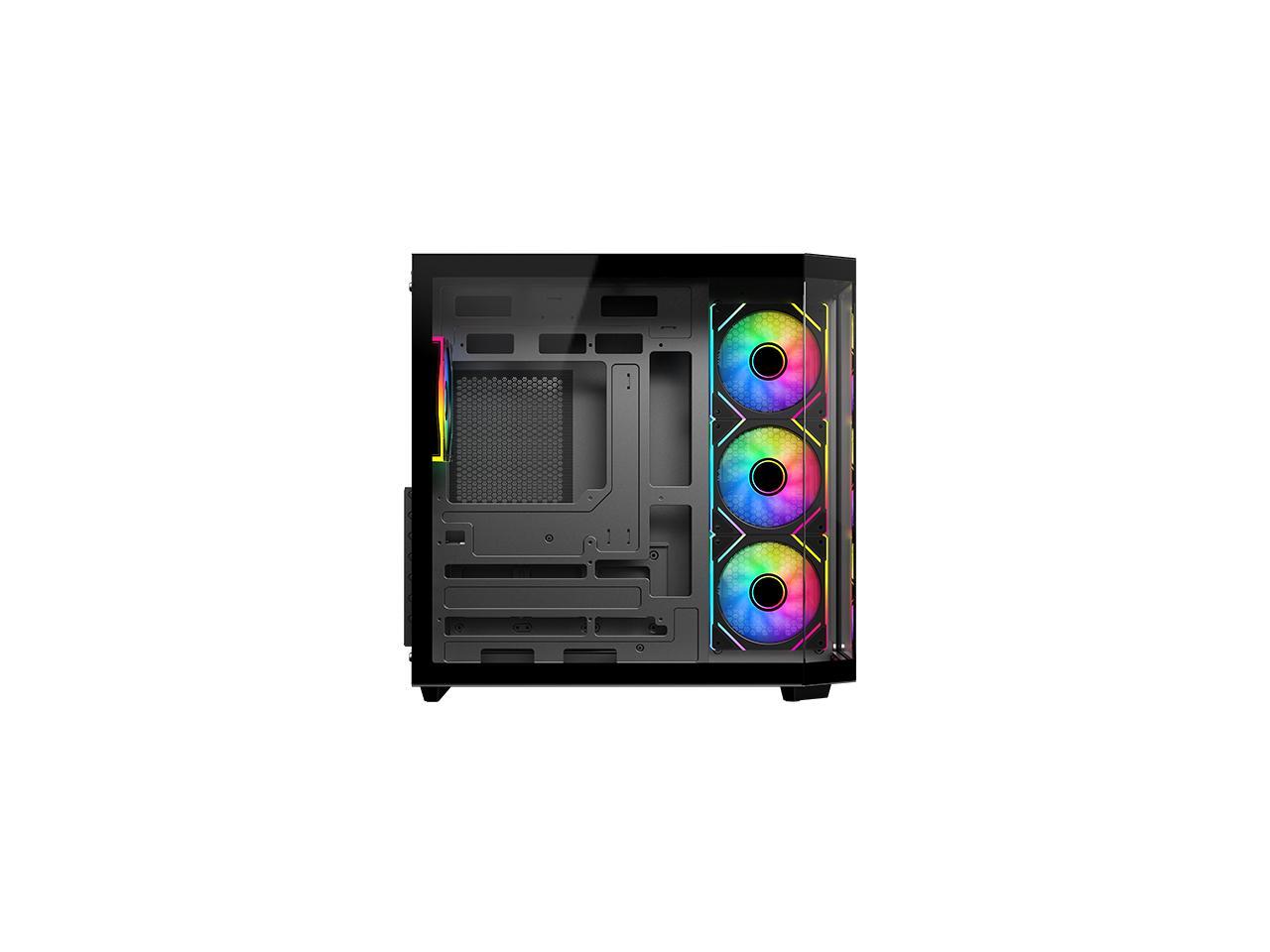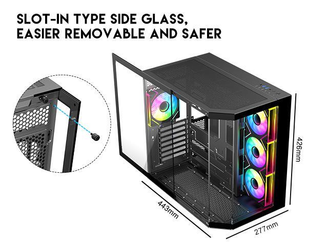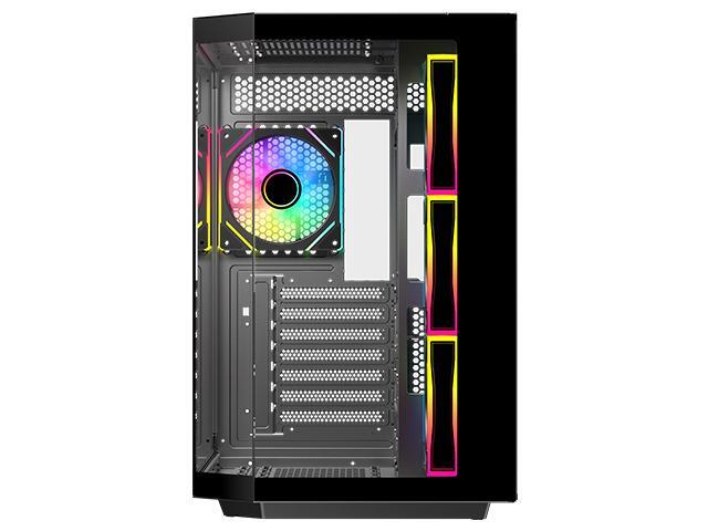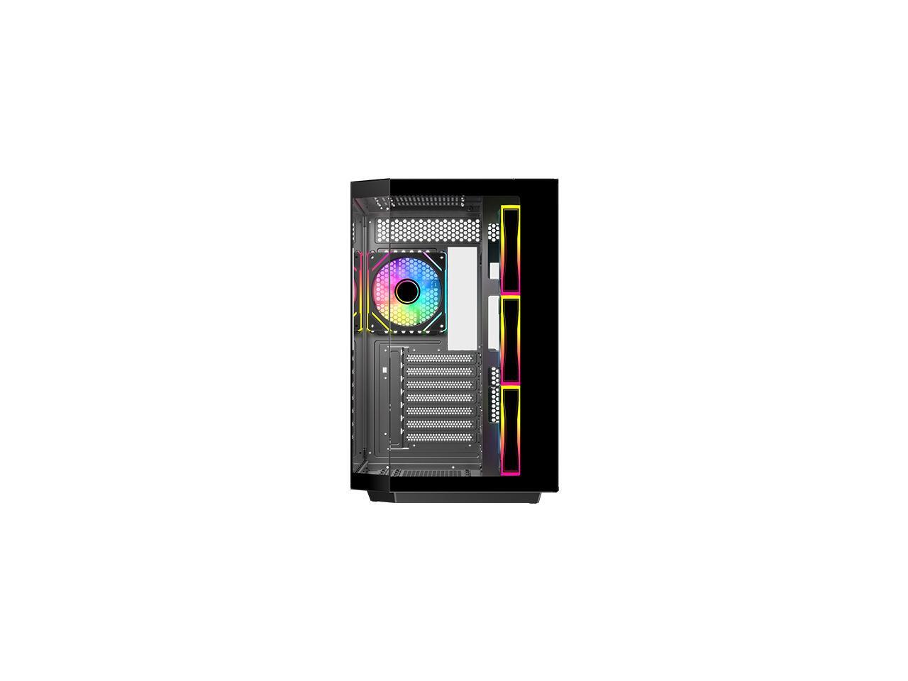 - 10 Fans Capability (3 x 120mm ARGB Reverse Blade PWM Fan x MB side, 1 x 120mm ARGB PWM Fan x rear pre-installed) Provide Great Cooling and Gaming Performance