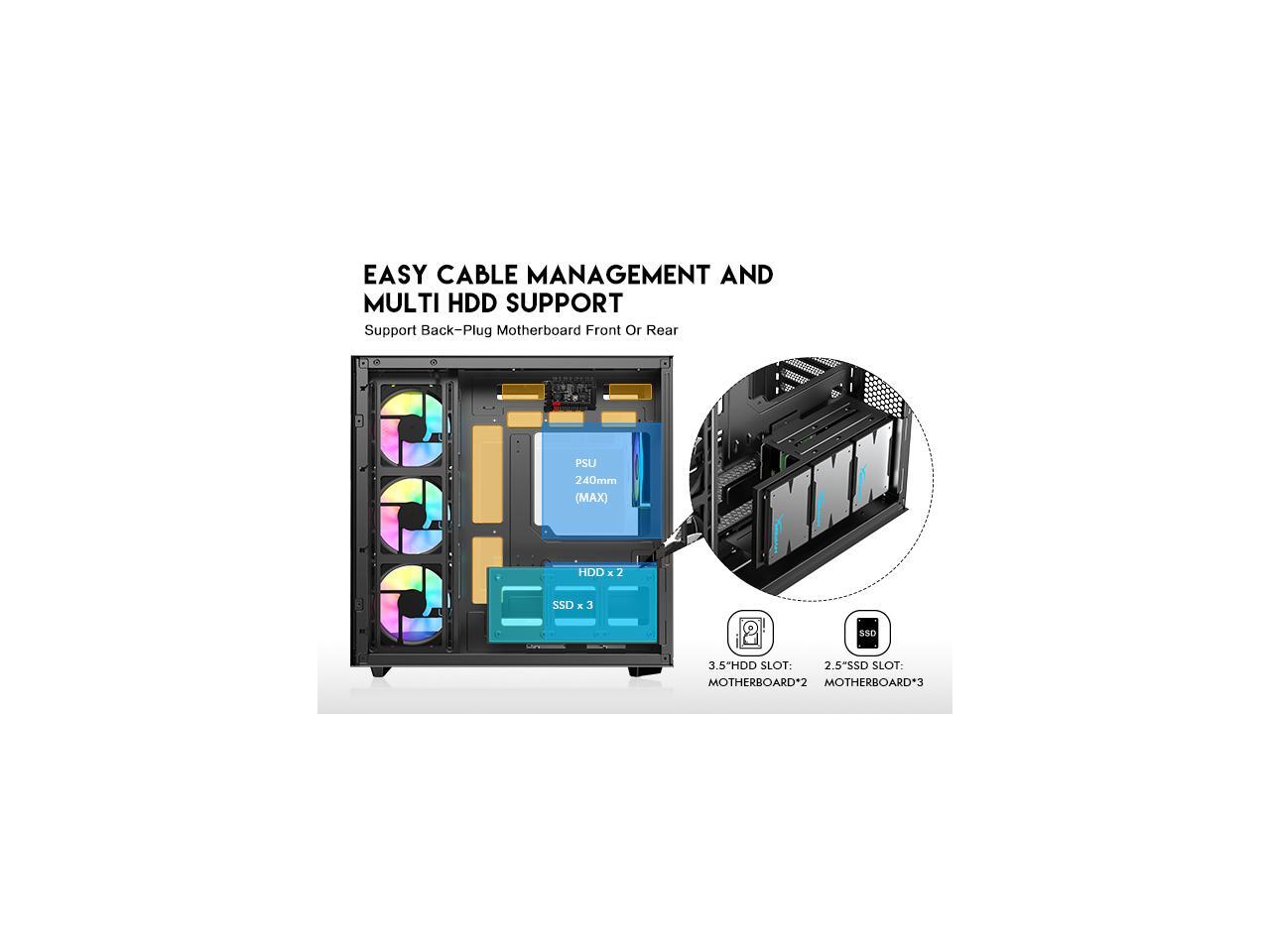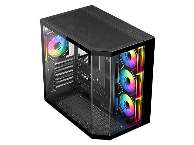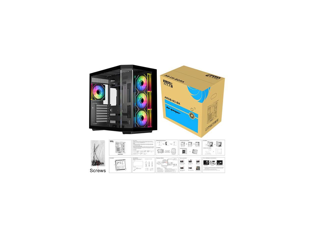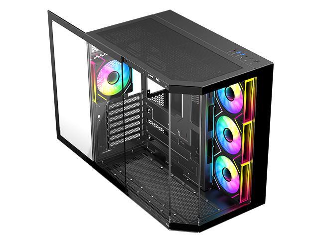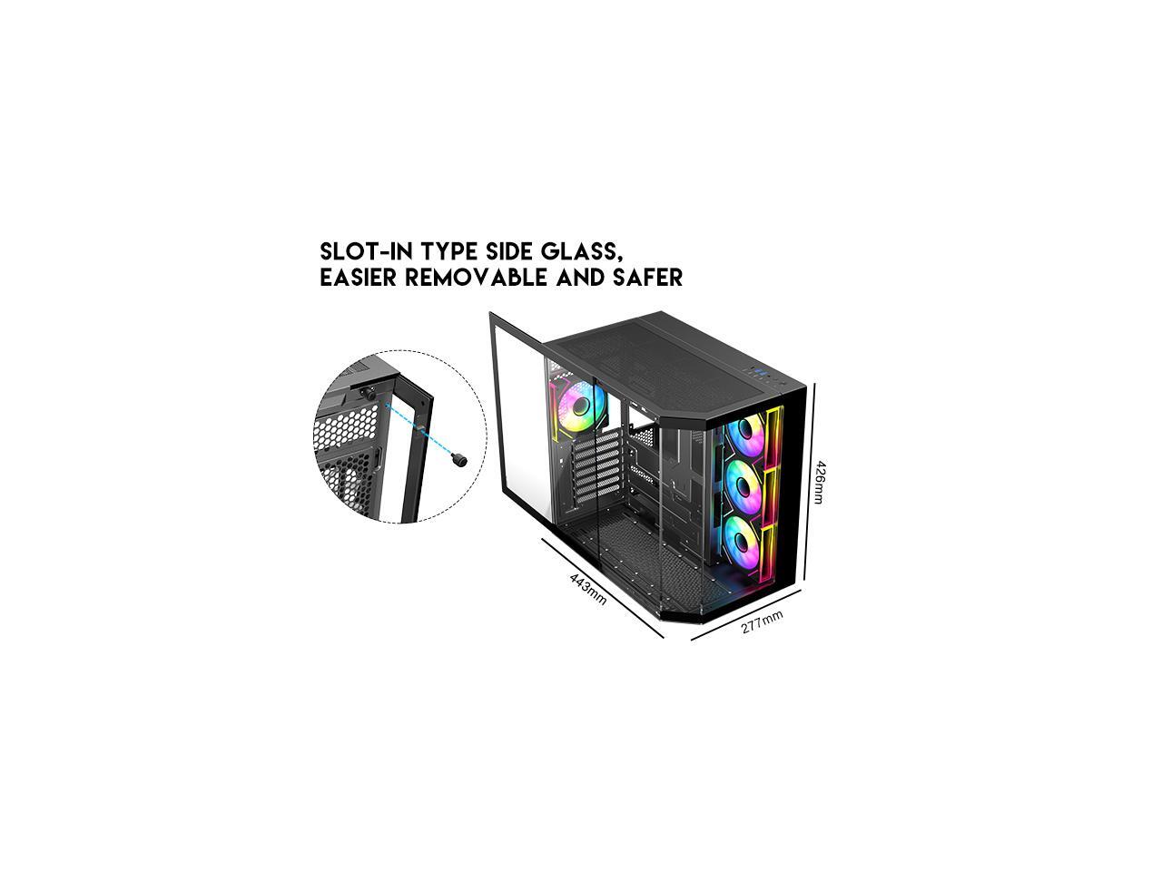 DIYPC ARGB-N3-BK Black USB3.0/ Type C Tempered Glass E-ATX /ATX Dual Chamber Gaming Computer Case w/ 3 x Tempered Glass Panel and 4 x ARGB PWM Fans (Pre-Installed). Support BTF Back Plug MB
