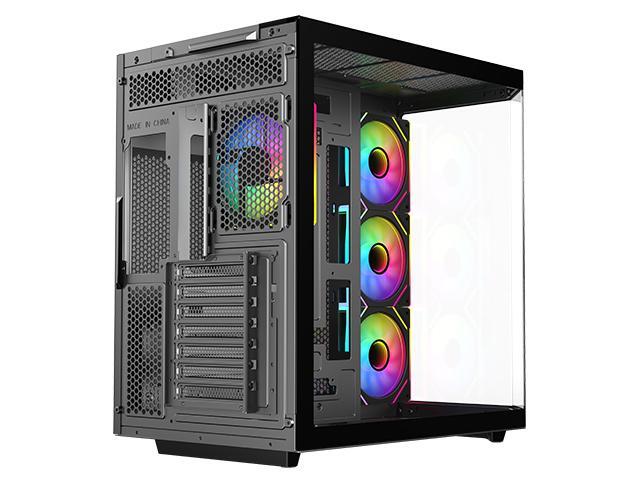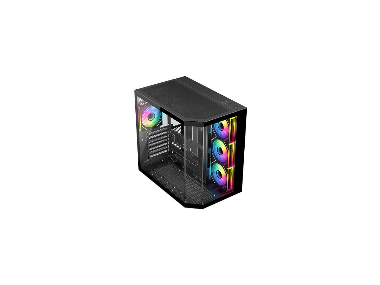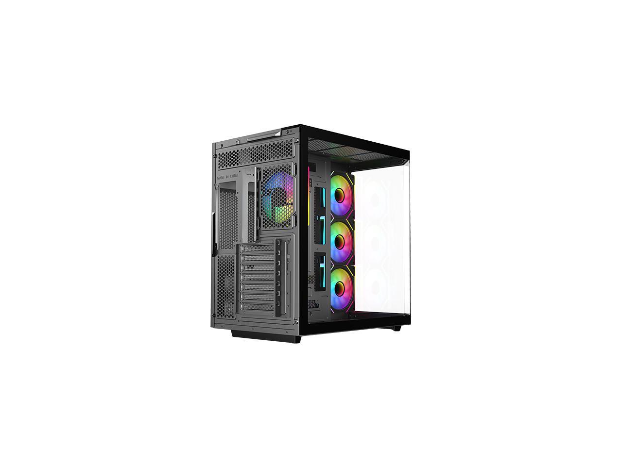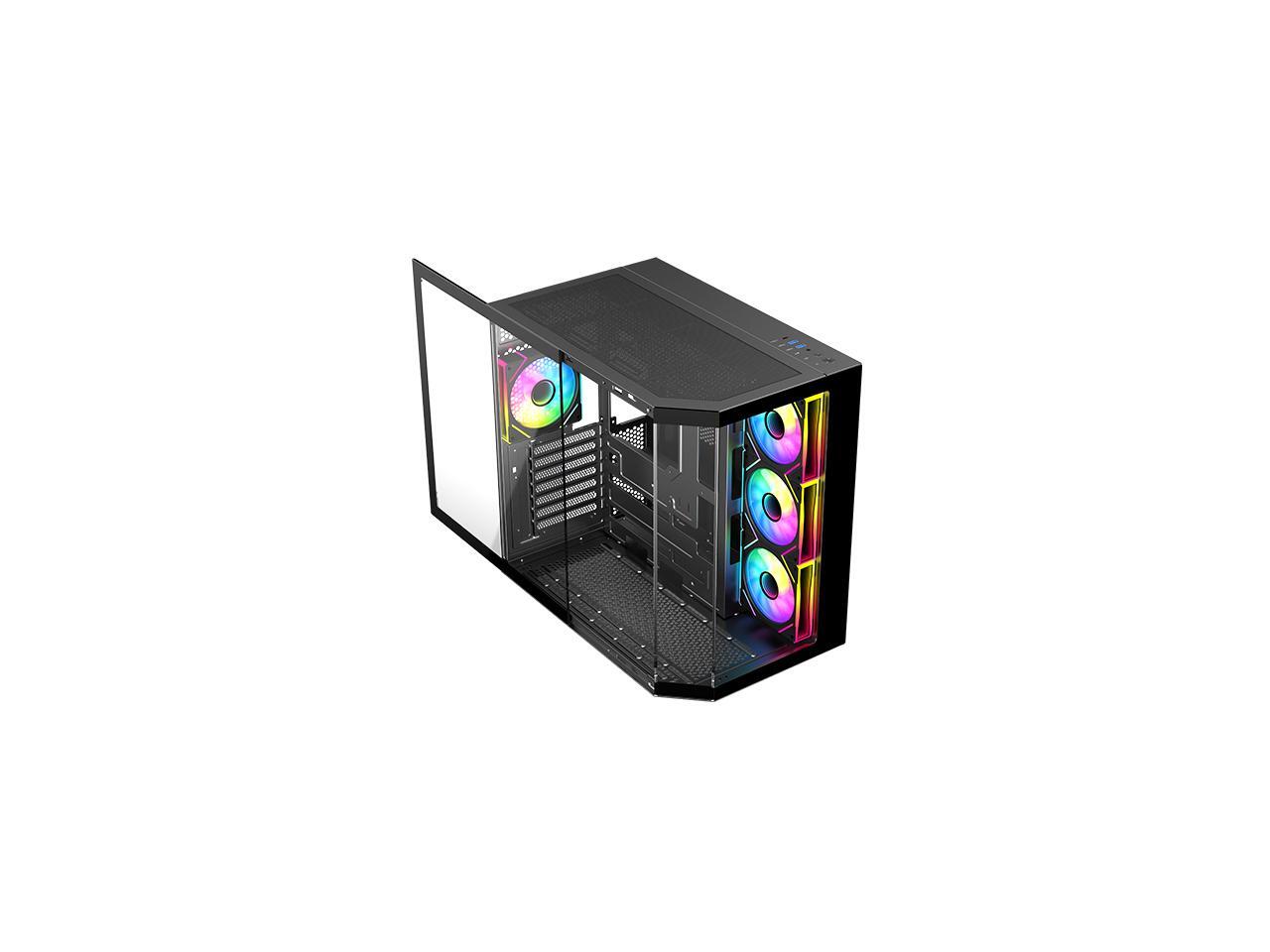 DIYPC ARGB-N3-BK Black USB3.0/ Type C Tempered Glass E-ATX /ATX Dual Chamber Gaming Computer Case w/ 3 x Tempered Glass Panel and 4 x ARGB PWM Fans (Pre-Installed). Support BTF Back Plug MB