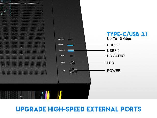 - Top Mounted IO ports - 2x USB 3.0 /Type C for up-to-date High Speed Data Transfer