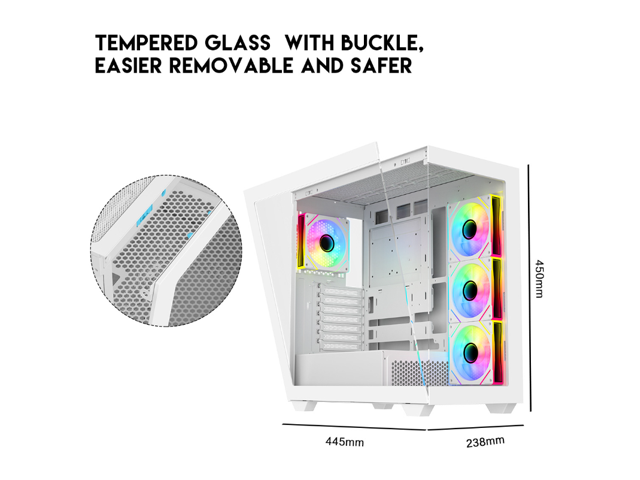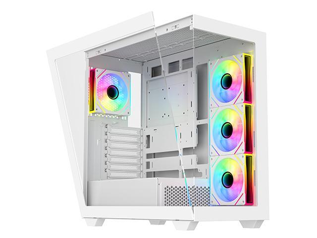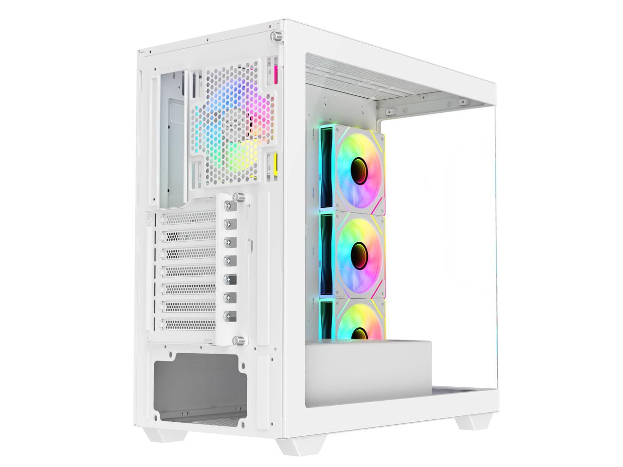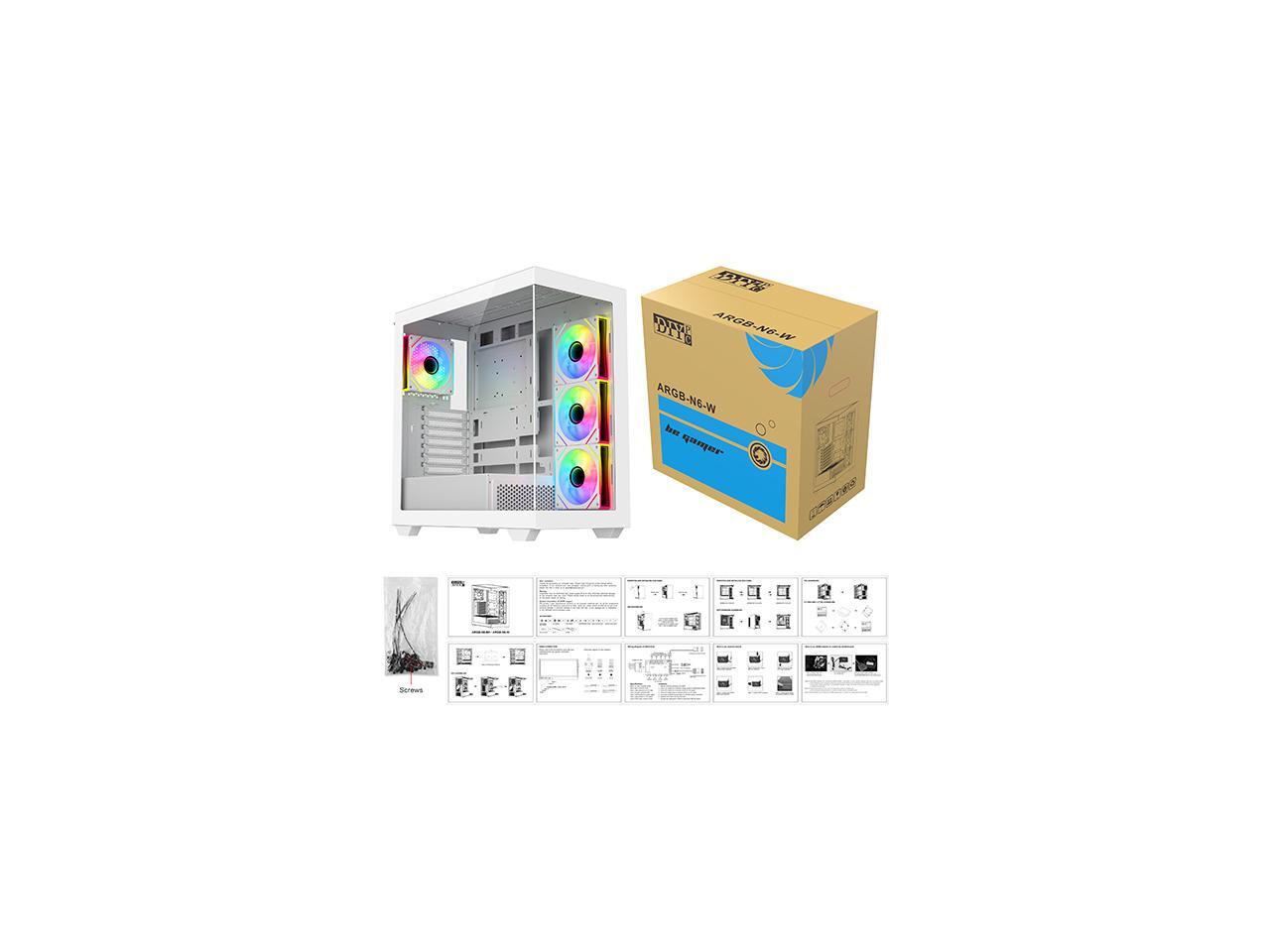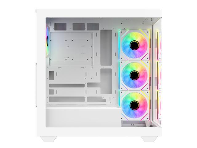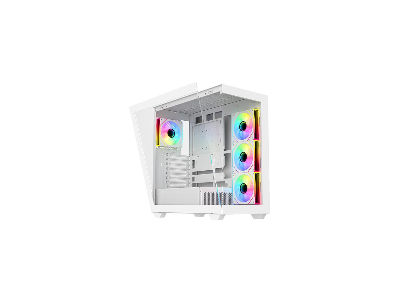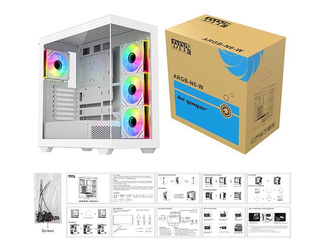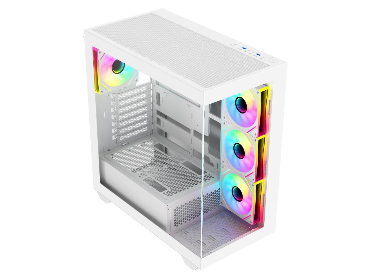 DIYPC ARGB-N6-W White Dual USB3.0/ 1 xType C Tempered Glass ATX Gaming Computer Case w/ Dual Tempered Glass Panel and 4 x ARGB PWM Fans (Pre-Installed). Support BTF Back Plug MB