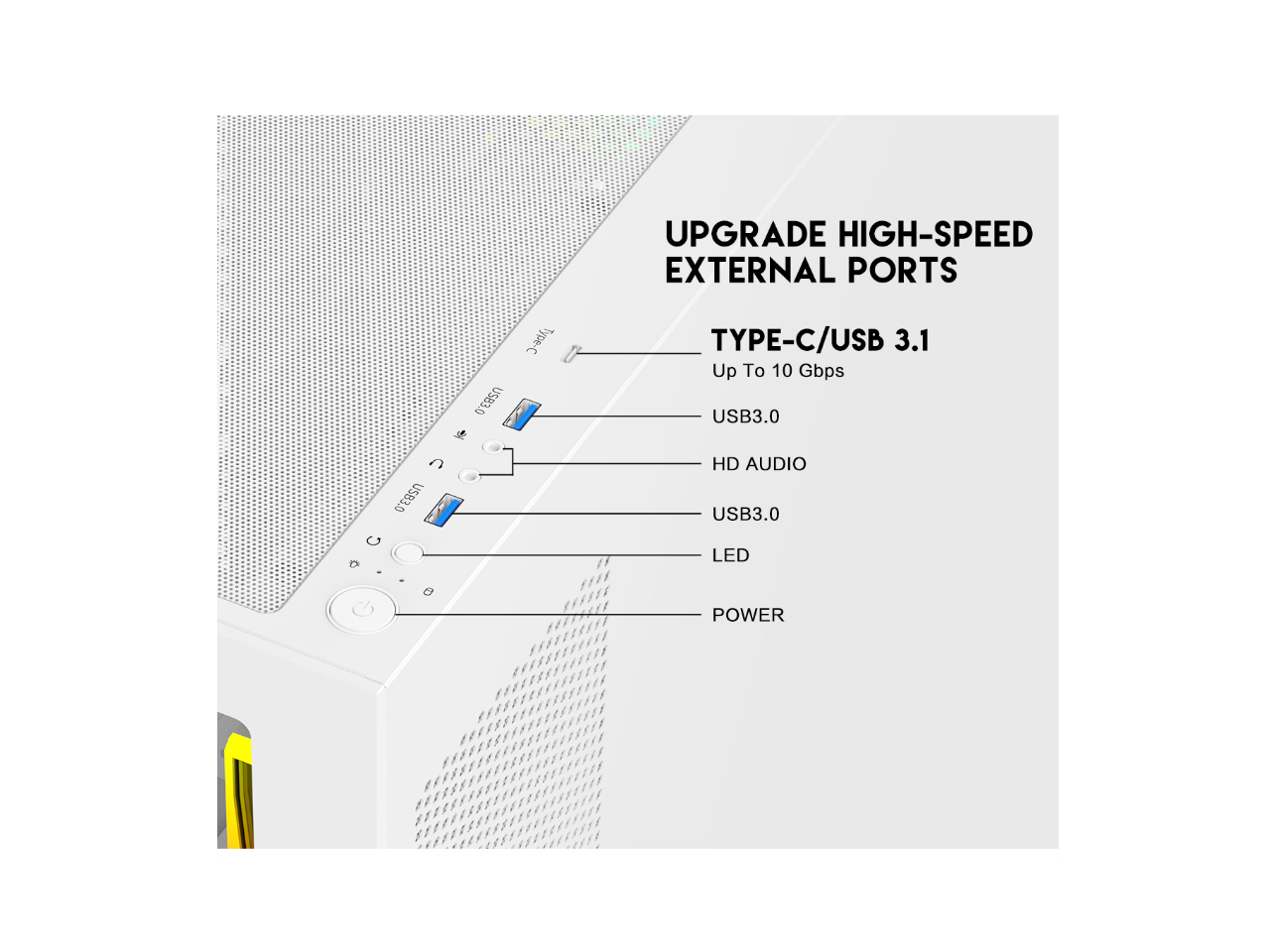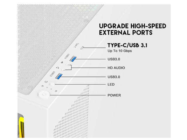 - Top Mounted IO ports - 2x USB 3.0 /Type C for up-to-date High Speed Data Transfer