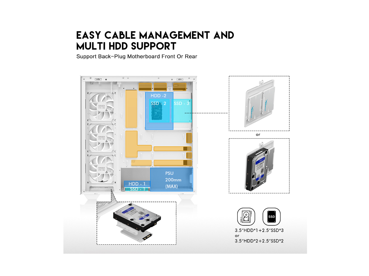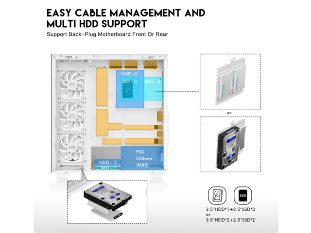 - Motherboard Compatibility: Supports E-ATX, ATX, Micro ATX, and ITX motherboards, support BTF back plug-in MB