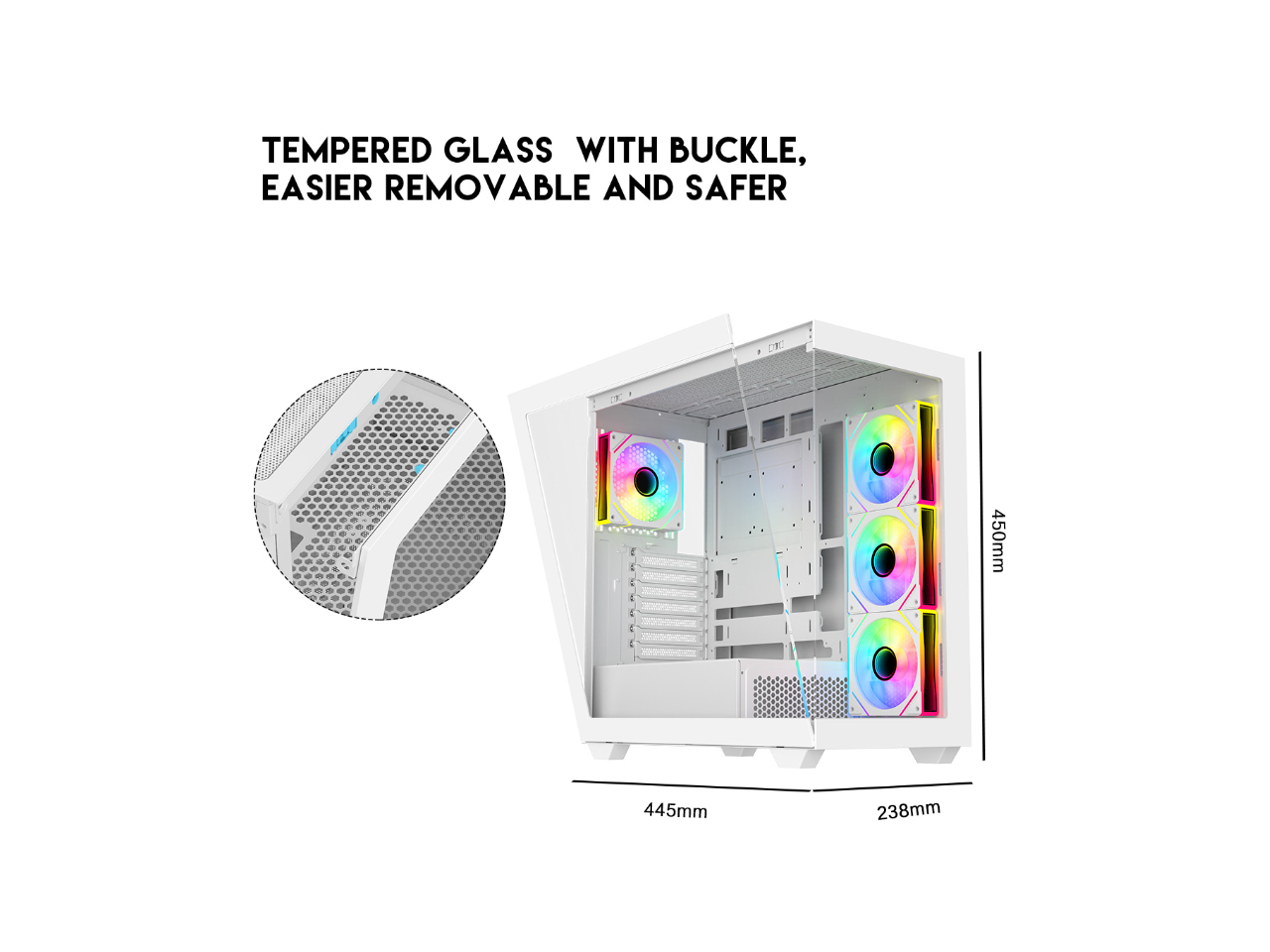 - 2 Ways to Control RGB Fan Lighting: Either by Manual RGB LED Button on Top I/O Panel; or SYNC w/your Motherboard to control RGB lighting w/ARGB 5V/3 Pin Header, PWM ARGB Fan Hub Included.