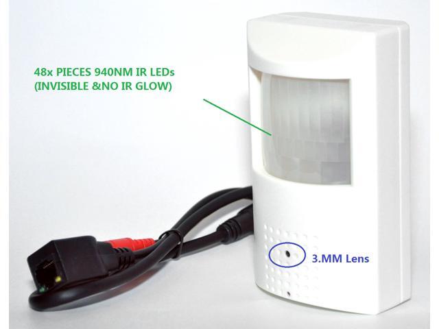 HD 1080P PIR Style Motion Detector Covert Hidden IP/Network Surveillance Spy Camera 3.7mm lens PoE Onvif 48x940nm(Invisible IR Glow) Leds Night-vision Support Mobile View P2P, Audio