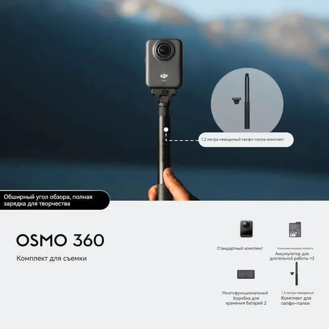 DJI Osmo 360 is a revolutionary 360 camera featuring groundbreaking 1-inch 360° imaging [1], designed to capture immersive, ultra-wide POV footage of your adventures. Whether you're skiing, cycling, diving, or vlogging, Osmo 360's waterproof [7] and cold-resistant design ensures reliable performance in harsh environments, from freezing temperatures to underwater scenes. Choose from two basic combos and a variety of magnetic accessories to meet your needsfilm longer, mount anywhere, and record crisp audio. With powerful batteries, Invisible Selfie Sticks [2], and a durable waterproof build, Osmo 360 is ready for every adventure. Relive your action-packed moments with clarity and ease, wherever your story takes you.