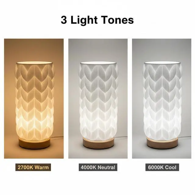 With the touch of a button, you can easily adjust the charming bedside lamps three lighting modes: warme light,natural light and daylight light.This convenient design provides adjustable lighting options for a variety of activities,Whether you're reading,working,or winding down before bed,this lamp provides the perfect lighting.