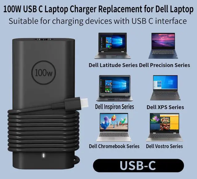 This 100W USB C Laptop Charger is not only suitable for Dell computers, but also compatible with your device as long as its Connector Type is USB C or Type C.