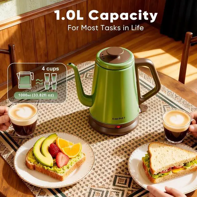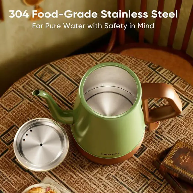 Safety 304 Stainless Steel Interior ~ The electric kettle is constructed in 304 stainless steel body with gooseneck spout,and steam lid. Food-grade stainless steel tea kettle gives you a great lifespan, remarkable durability, and perfect insulation, as well as the purest water without chemical hazard.