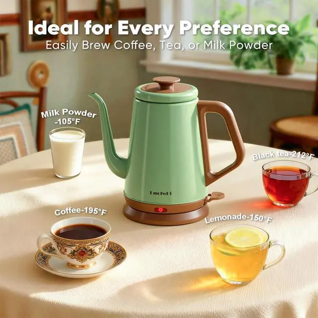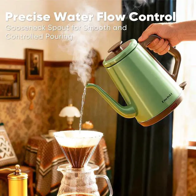 Elegant Gooseneck Kettle for Precise Control ~ DmofwHi gooseneck electric kettle comes with a precision-designed gooseneck spout that provides a waterfall flow of water with full control at all pouring angles. Thanks to the gooseneck spout make DmofwHi electric gooseneck kettle to be a great pour over coffee kettle for your everyday coffee and tea.