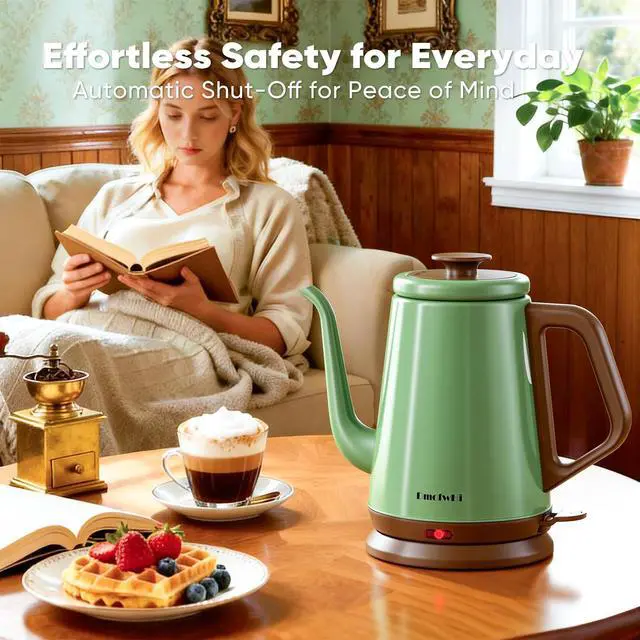Safety 304 Stainless Steel Interior ~ The electric kettle is constructed in 304 stainless steel body with gooseneck spout,and steam lid. Food-grade stainless steel tea kettle gives you a great lifespan, remarkable durability, and perfect insulation, as well as the purest water without chemical hazard.
