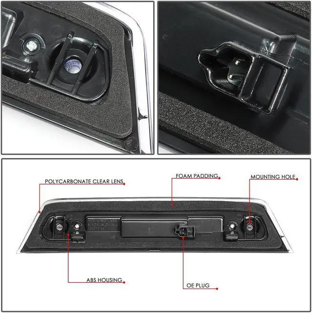 Our LED third brake light is a quick and easy way to dress up your vehicle. When lit, the bright LEDs (Light Emitting Diodes) are illuminated, and shine up to ten times brighter than standard light bulbs. LEDs also come on faster than standard halogen bulbs which have to heat up a coil. This results in The LED third brake light has a durable Polycarbonate Lens with free form reflector, and available with either the Clear lens or custom Smoked lens.
