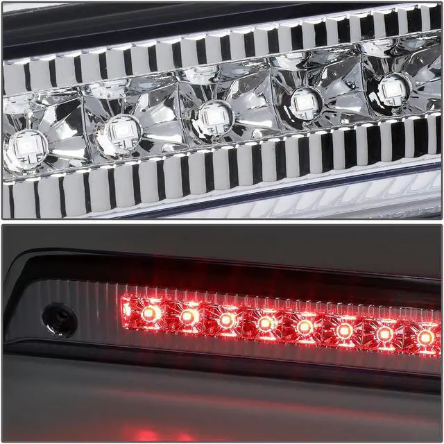 Our LED third brake light is a quick and easy way to dress up your vehicle. When lit, the bright LEDs (Light Emitting Diodes) are illuminated, and shine up to ten times brighter than standard light bulbs. LEDs also come on faster than standard halogen bulbs which have to heat up a coil. This results in The LED third brake light has a durable Polycarbonate Lens with free form reflector, and available with either the Clear lens or custom Smoked lens.