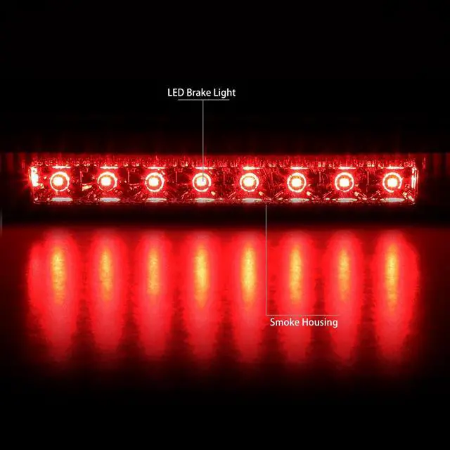 Our LED third brake light is a quick and easy way to dress up your vehicle. When lit, the bright LEDs (Light Emitting Diodes) are illuminated, and shine up to ten times brighter than standard light bulbs. LEDs also come on faster than standard halogen bulbs which have to heat up a coil. This results in The LED third brake light has a durable Polycarbonate Lens with free form reflector, and available with either the Clear lens or custom Smoked lens.