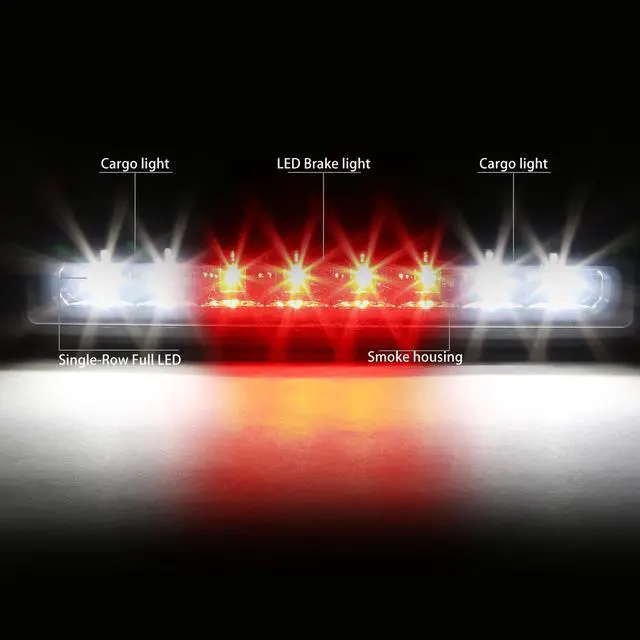 Our LED third brake light is a quick and easy way to dress up your pickup truck. When lit, the bright LEDs (Light Emitting Diodes) are illuminated, and shine up to ten times brighter than standard light bulbs. Even when the brake is not pressed, the integrated cargo light gives off plenty of white light to view your gear in the truck bed. The LED third brake light has a durable polycarbonate lens with free form reflector, and available with either the Clear lens or custom Smoked lens.