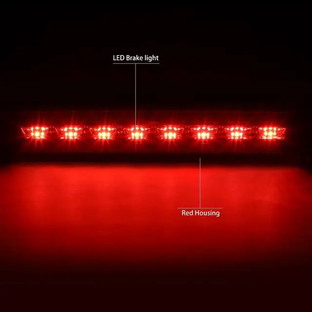 Our LED third brake light is a quick and easy way to dress up your pickup truck. When lit, the bright LEDs (Light Emitting Diodes) are illuminated, and shine up to ten times brighter than standard light bulbs. Even when the brake is not pressed, the integrated cargo light (if equipped) gives off plenty of white light to view your gear in the truck bed. The LED third brake light has a durable Polycarbonate Lens with free form reflector, and available with either the Clear lens or custom Smoked lens.