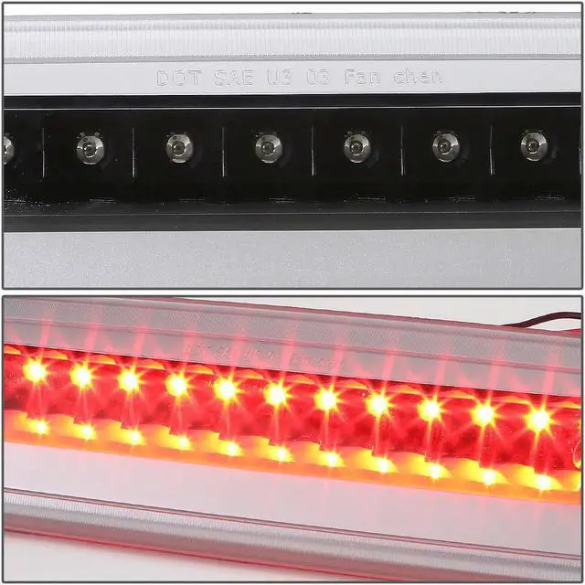 Our LED third brake light is a quick and easy way to dress up your pickup truck. When lit, the bright LEDs (Light Emitting Diodes) are illuminated, and shine up to ten times brighter than standard light bulbs. Even when the brake is not pressed, the integrated cargo light gives off plenty of white light to view your gear in the truck bed. The LED third brake light has a durable polycarbonate lens with free form reflector, and available with either the Clear lens or custom Smoked lens.