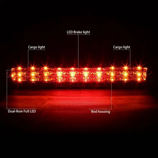 Our LED third brake light is a quick and easy way to dress up your pickup truck. When lit, the bright LEDs (Light Emitting Diodes) are illuminated, and shine up to ten times brighter than standard light bulbs. Even when the brake is not pressed, the integrated cargo light gives off plenty of white light to view your gear in the truck bed. The LED third brake light has a durable polycarbonate lens with free form reflector, and available with either the Clear lens or custom Smoked lens.
