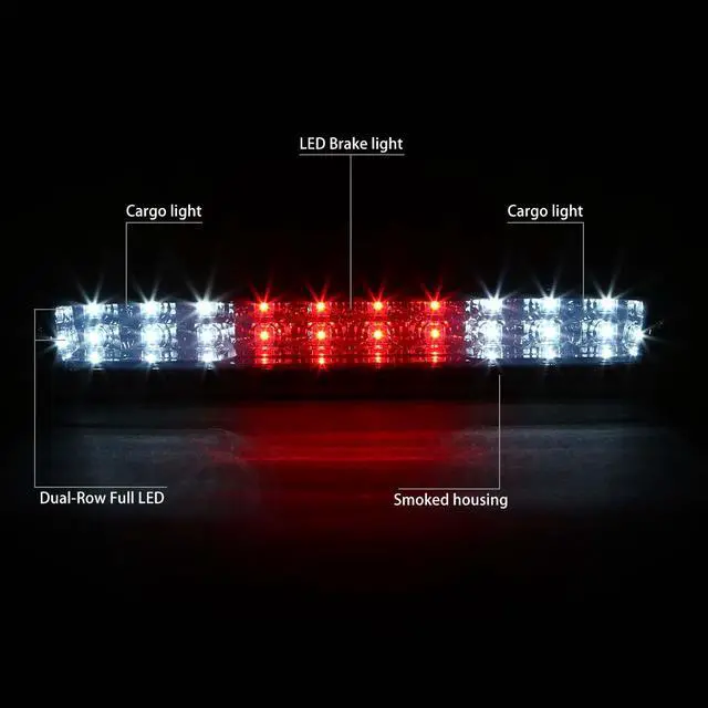 - UPGRADE DESIGN - Built in cargo light function. Dual-Row full LED and red / white LED bar. Brings a different appearance to vehicle thats great for show use.