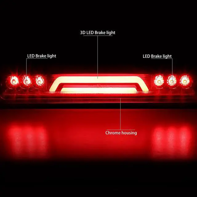 Our LED third brake light is a quick and easy way to dress up your pickup truck. When lit, the bright LEDs (Light Emitting Diodes) are illuminated, and shine up to ten times brighter than standard light bulbs. Even when the brake is not pressed, the integrated cargo light (if equipped) gives off plenty of white light to view your gear in the truck bed. The LED third brake light has a durable polycarbonate lens with free form reflector, and available with either the Clear lens or custom Smoked lens.