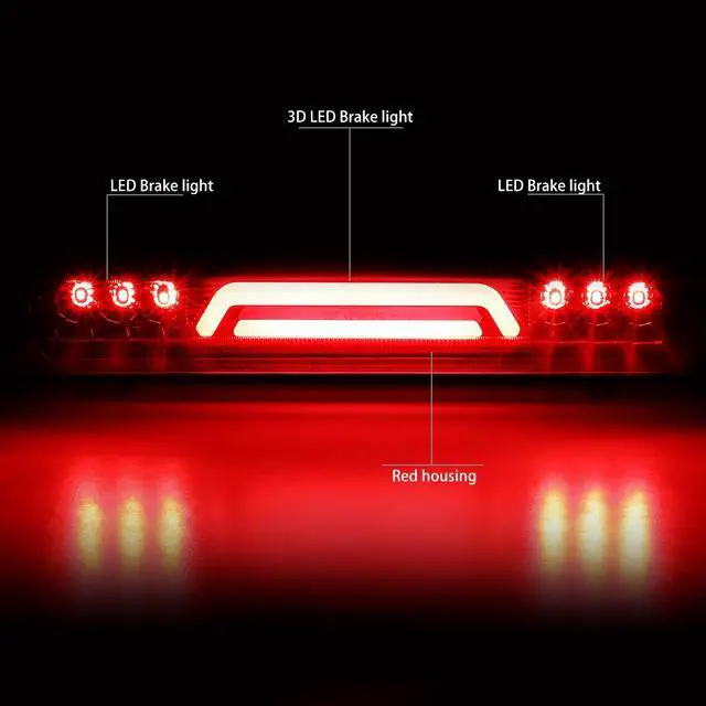 Our LED third brake light is a quick and easy way to dress up your pickup truck. When lit, the bright LEDs (Light Emitting Diodes) are illuminated, and shine up to ten times brighter than standard light bulbs. Even when the brake is not pressed, the integrated cargo light (if equipped) gives off plenty of white light to view your gear in the truck bed. The LED third brake light has a durable polycarbonate lens with free form reflector, and available with either the Clear lens or custom Smoked lens.