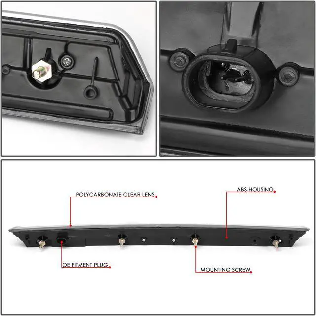 Our LED third brake light is a quick and easy way to dress up your vehicle. When lit, the bright LEDs (Light Emitting Diodes) are illuminated, and shine up to ten times brighter than standard light bulbs. LEDs also come on faster than standard halogen bulbs which have to heat up a coil. This results in The LED third brake light has a durable Polycarbonate Lens with free form reflector, and available with either the Clear lens or custom Smoked lens.