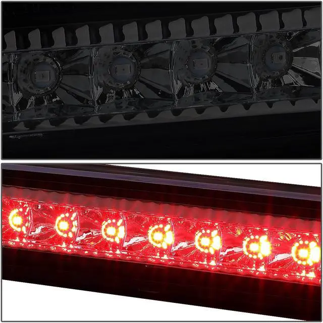 Our LED third brake light is a quick and easy way to dress up your pickup truck. When lit, the bright LEDs (Light Emitting Diodes) are illuminated, and shine up to ten times brighter than standard light bulbs. Even when the brake is not pressed, the integrated cargo light (if equipped) gives off plenty of white light to view your gear in the truck bed. The LED third brake light has a durable Polycarbonate Lens with free form reflector, and available with either the Clear lens or custom Smoked lens.