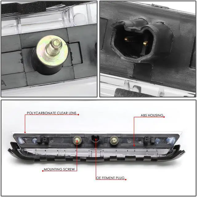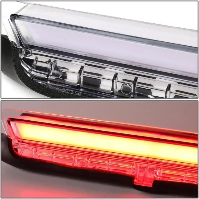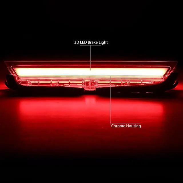 Our LED third brake light is a quick and easy way to dress up your pickup truck. When lit, the bright LEDs (Light Emitting Diodes) are illuminated, and shine up to ten times brighter than standard light bulbs. Even when the brake is not pressed, the integrated cargo light (if equipped) gives off plenty of white light to view your gear in the truck bed. The LED third brake light has a durable Polycarbonate Lens with free form reflector, and available with either the Clear lens or custom Smoked lens.