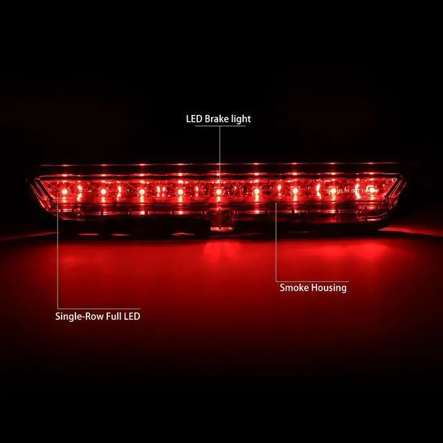 Our LED third brake light is a quick and easy way to dress up your pickup truck. When lit, the bright LEDs (Light Emitting Diodes) are illuminated, and shine up to ten times brighter than standard light bulbs. Even when the brake is not pressed, the integrated cargo light (if equipped) gives off plenty of white light to view your gear in the truck bed. The LED third brake light has a durable Polycarbonate Lens with free form reflector, and available with either the Clear lens or custom Smoked lens.