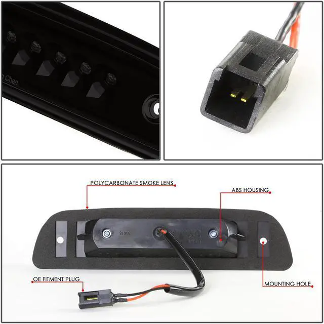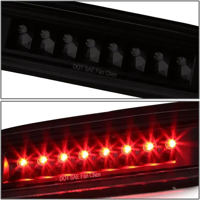Our LED third brake light is a quick and easy way to dress up your pickup truck. When lit, the bright LEDs (Light Emitting Diodes) are illuminated, and shine up to ten times brighter than standard light bulbs. Even when the brake is not pressed, the integrated cargo light (if equipped) gives off plenty of white light to view your gear in the truck bed. The LED third brake light has a durable Polycarbonate Lens with free form reflector, and available with either the Clear lens or custom Smoked lens.